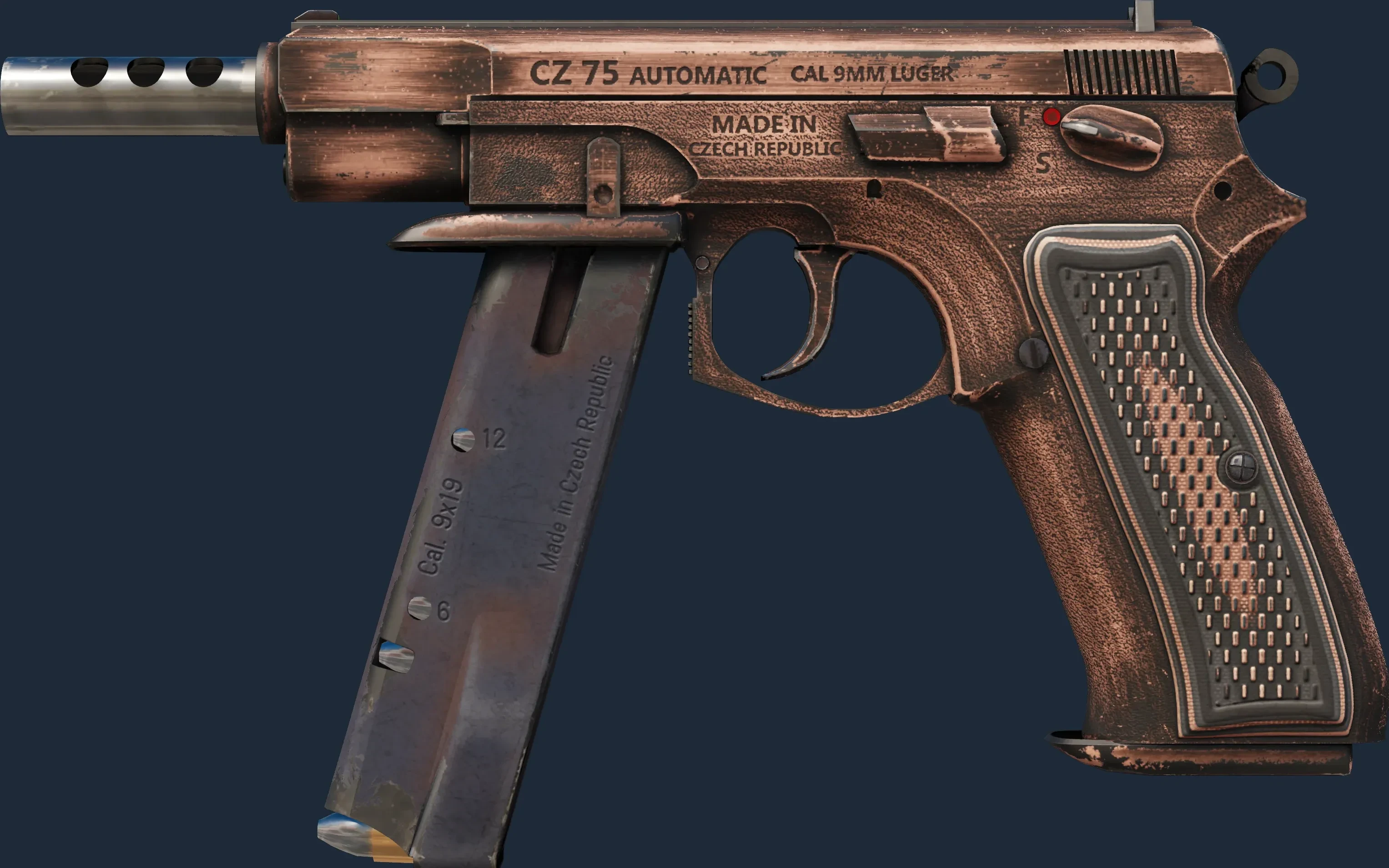 The CZ75-Auto | Distressed is a Covert grade skin for the CZ75-Auto in Counter-Strike 2. It features a Custom Paint Job finish and was designed by Teo.