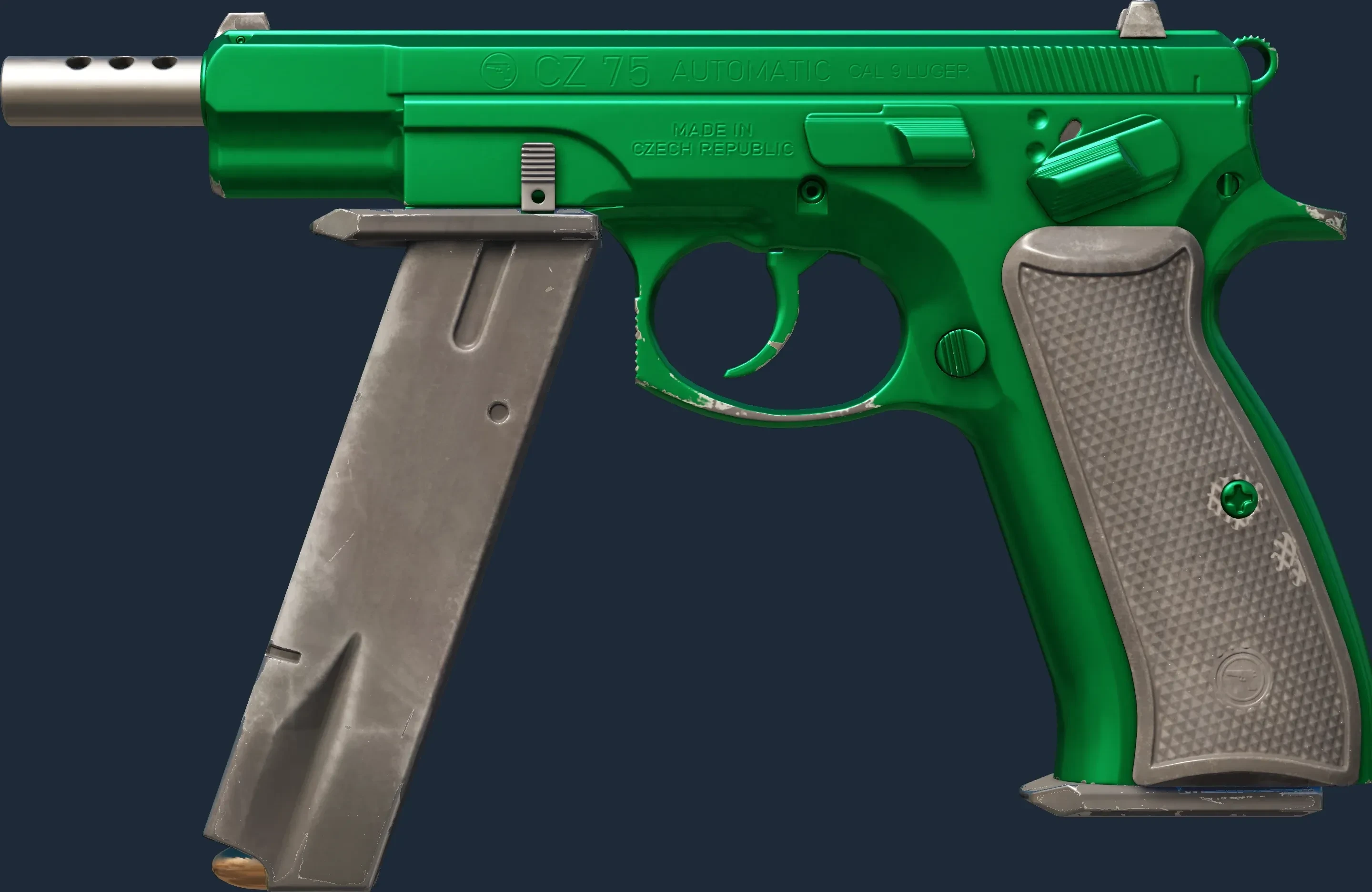 The CZ75-Auto | Emerald is a Covert grade skin for the CZ75-Auto in Counter-Strike 2. It features a Custom Paint Job finish and was designed by Valve.