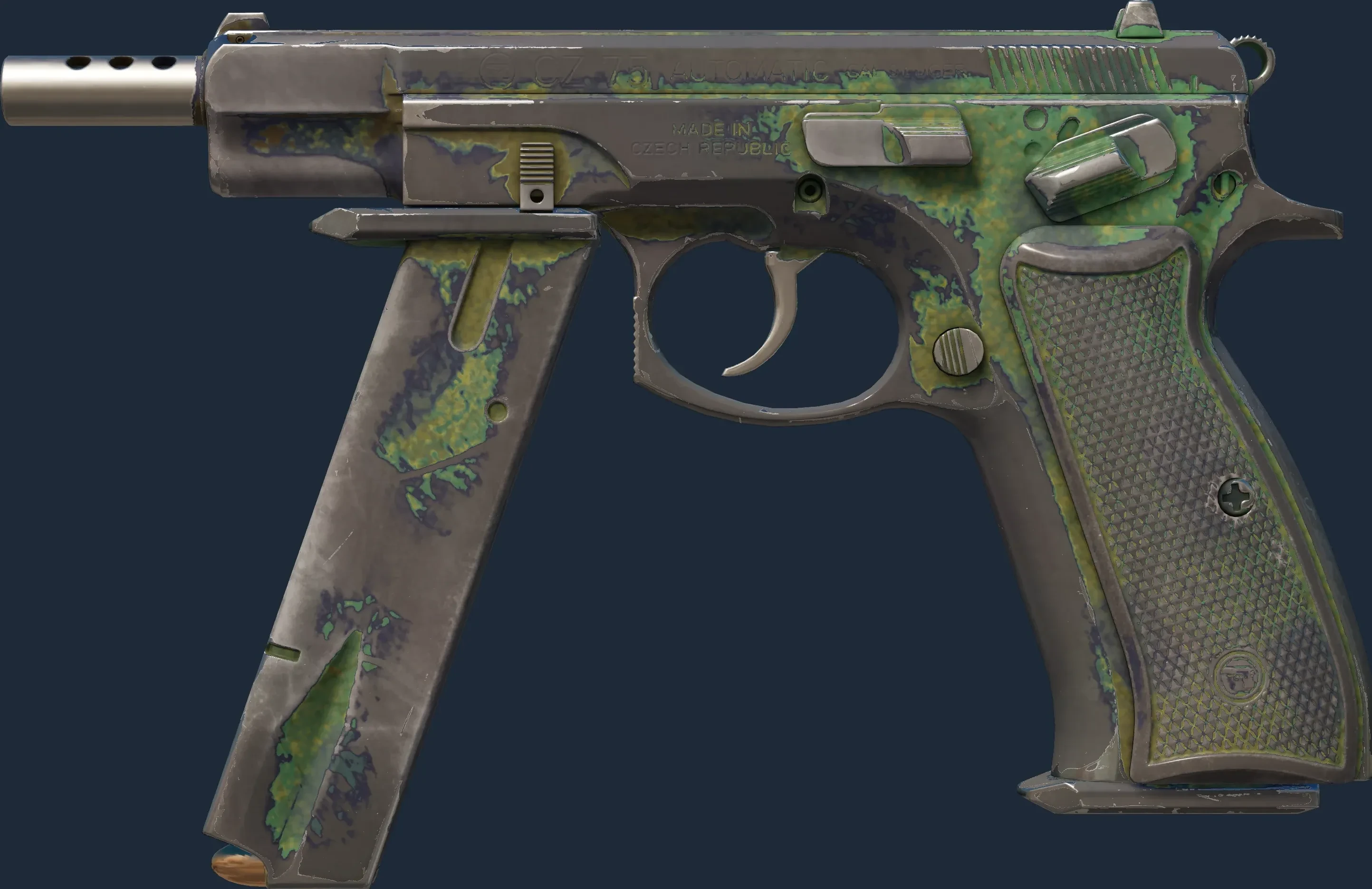 The CZ75-Auto | Jungle Dashed is a Covert grade skin for the CZ75-Auto in Counter-Strike 2. It features a Custom Paint Job finish and was designed by Valve.