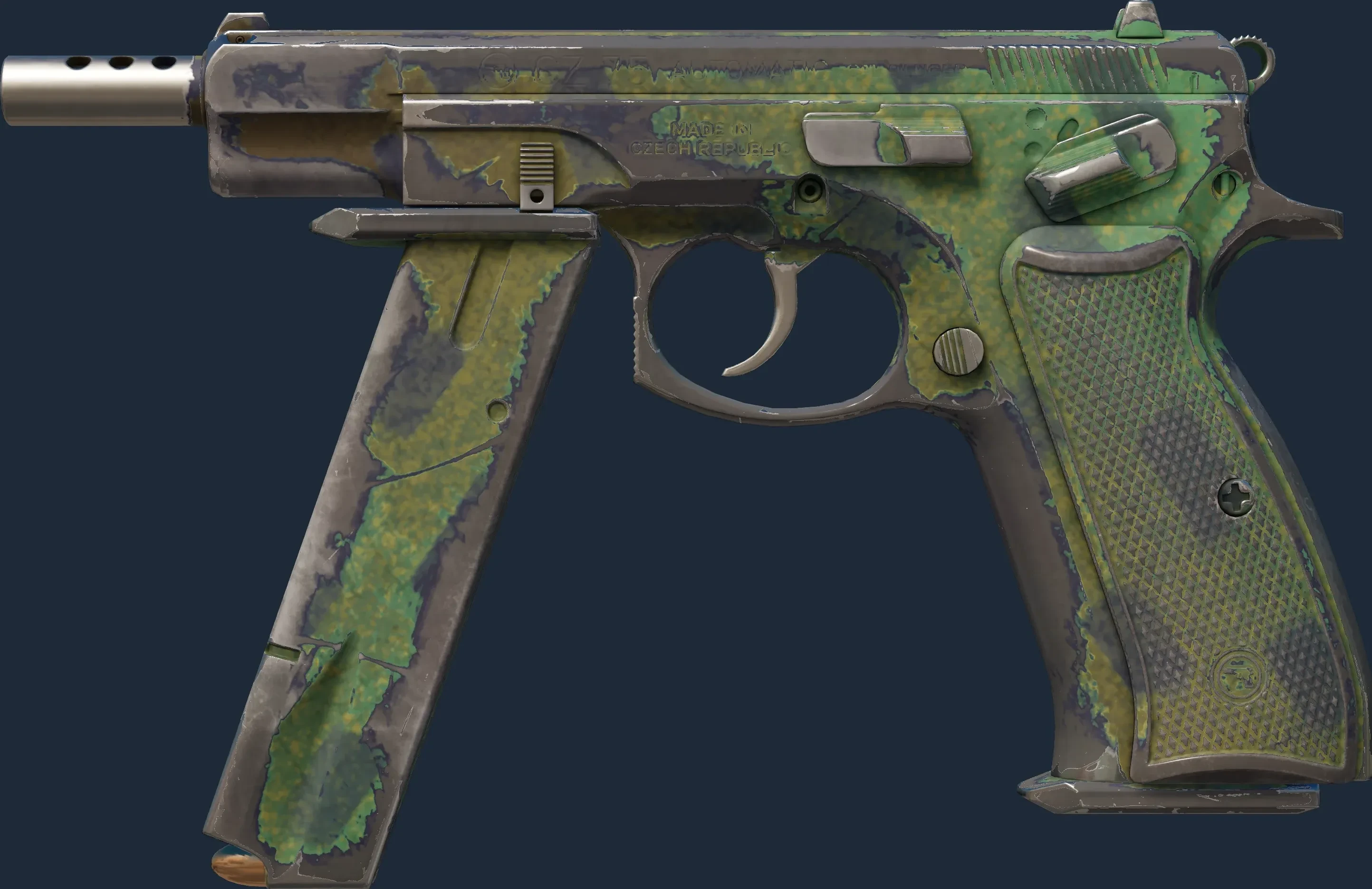 The CZ75-Auto | Jungle Dashed is a Covert grade skin for the CZ75-Auto in Counter-Strike 2. It features a Custom Paint Job finish and was designed by Valve.