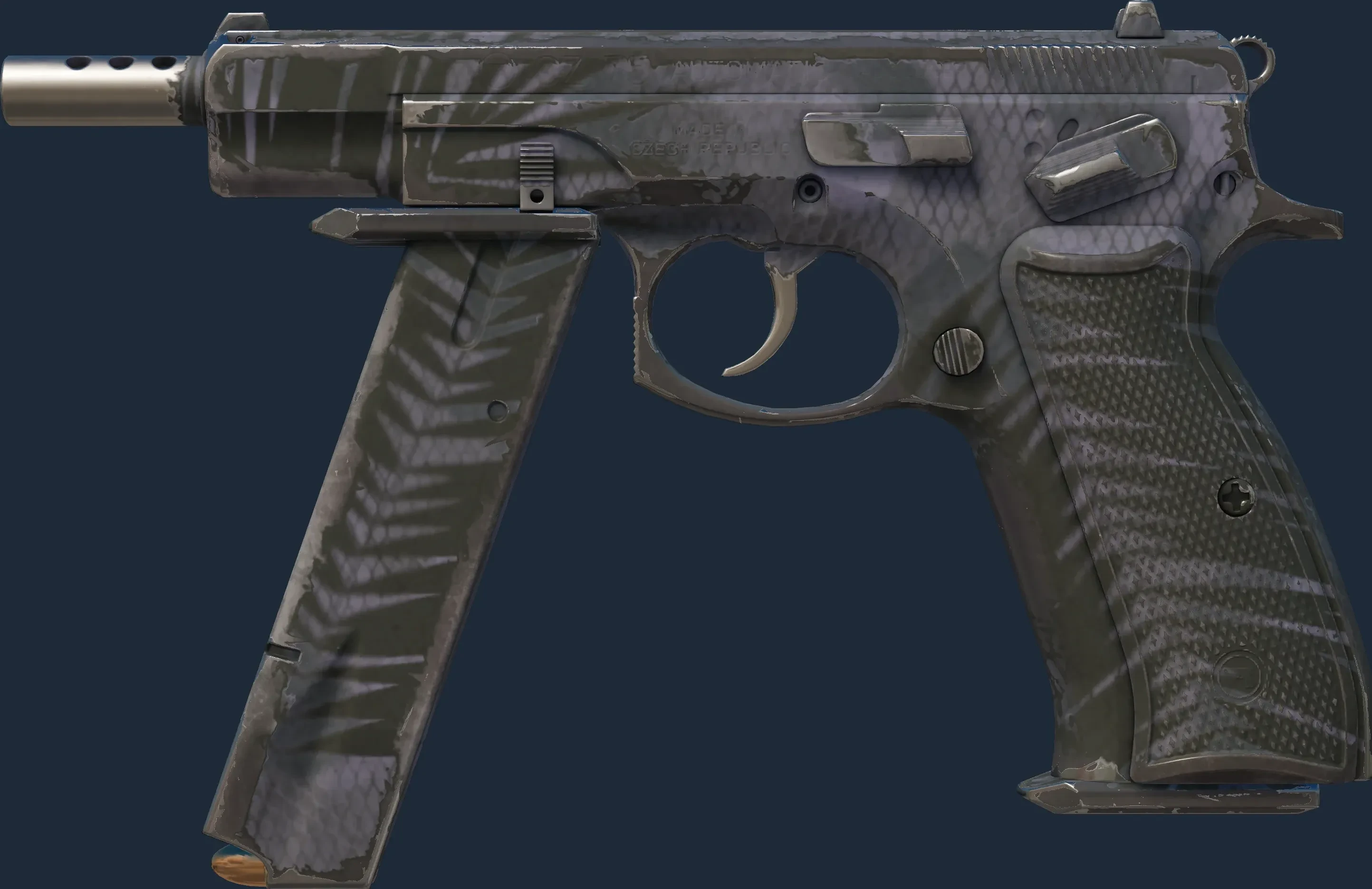 The CZ75-Auto | Midnight Palm is a Covert grade skin for the CZ75-Auto in Counter-Strike 2. It features a Custom Paint Job finish and was designed by Valve.