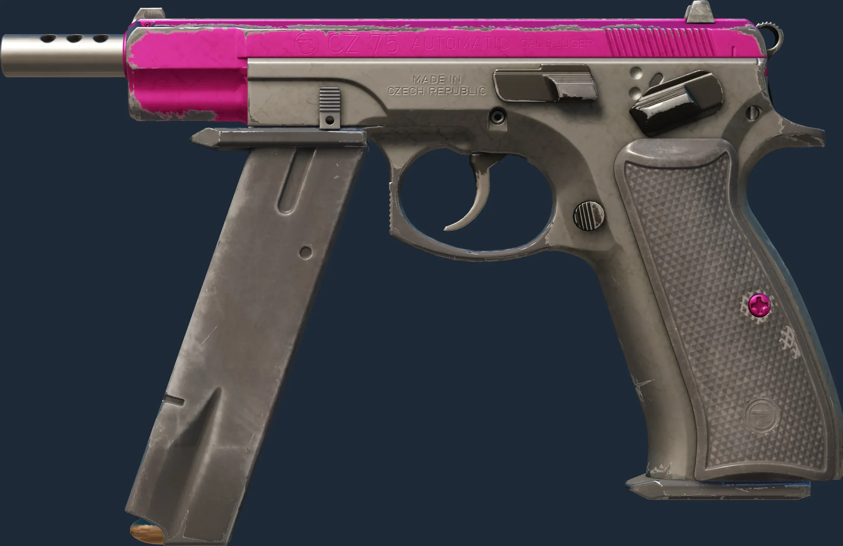 The CZ75-Auto | The Fuschia Is Now is a Covert grade skin for the CZ75-Auto in Counter-Strike 2. It features a Custom Paint Job finish and was designed by Valve.