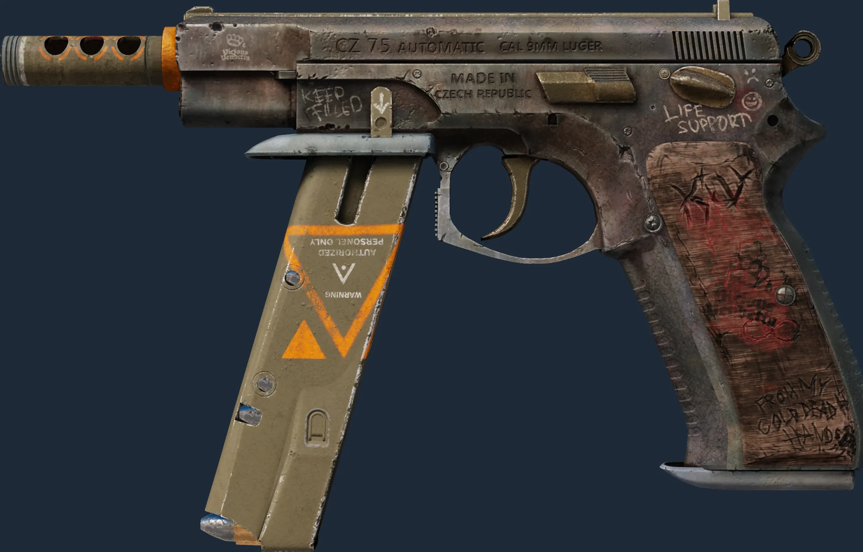 The CZ75-Auto | Vendetta is a Covert grade skin for the CZ75-Auto in Counter-Strike 2. It features a Custom Paint Job finish and was designed by emu.