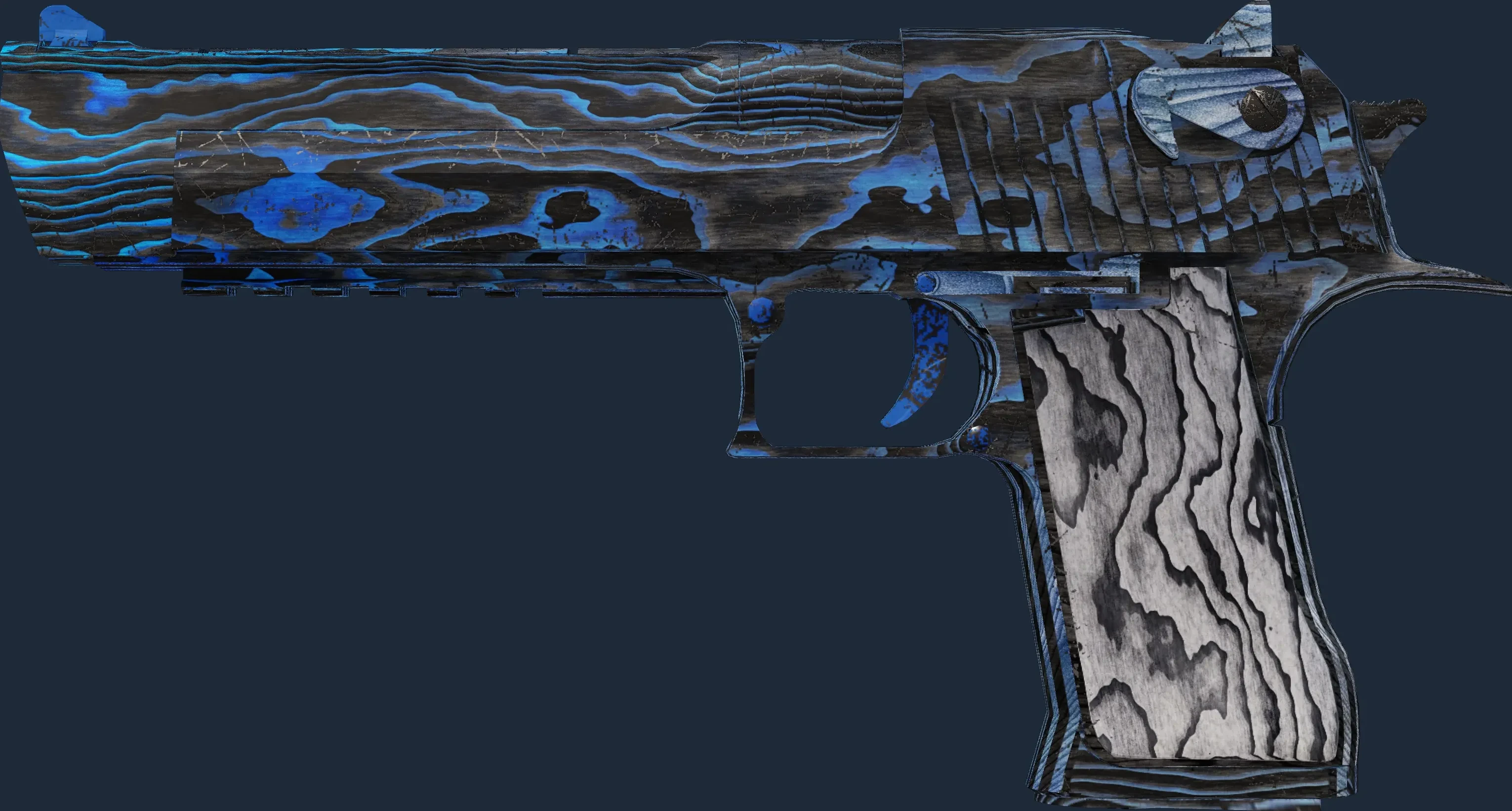 The Desert Eagle | Blue Ply is a Covert grade skin for the Desert Eagle in Counter-Strike 2. It features a Custom Paint Job finish and was designed by PTP.