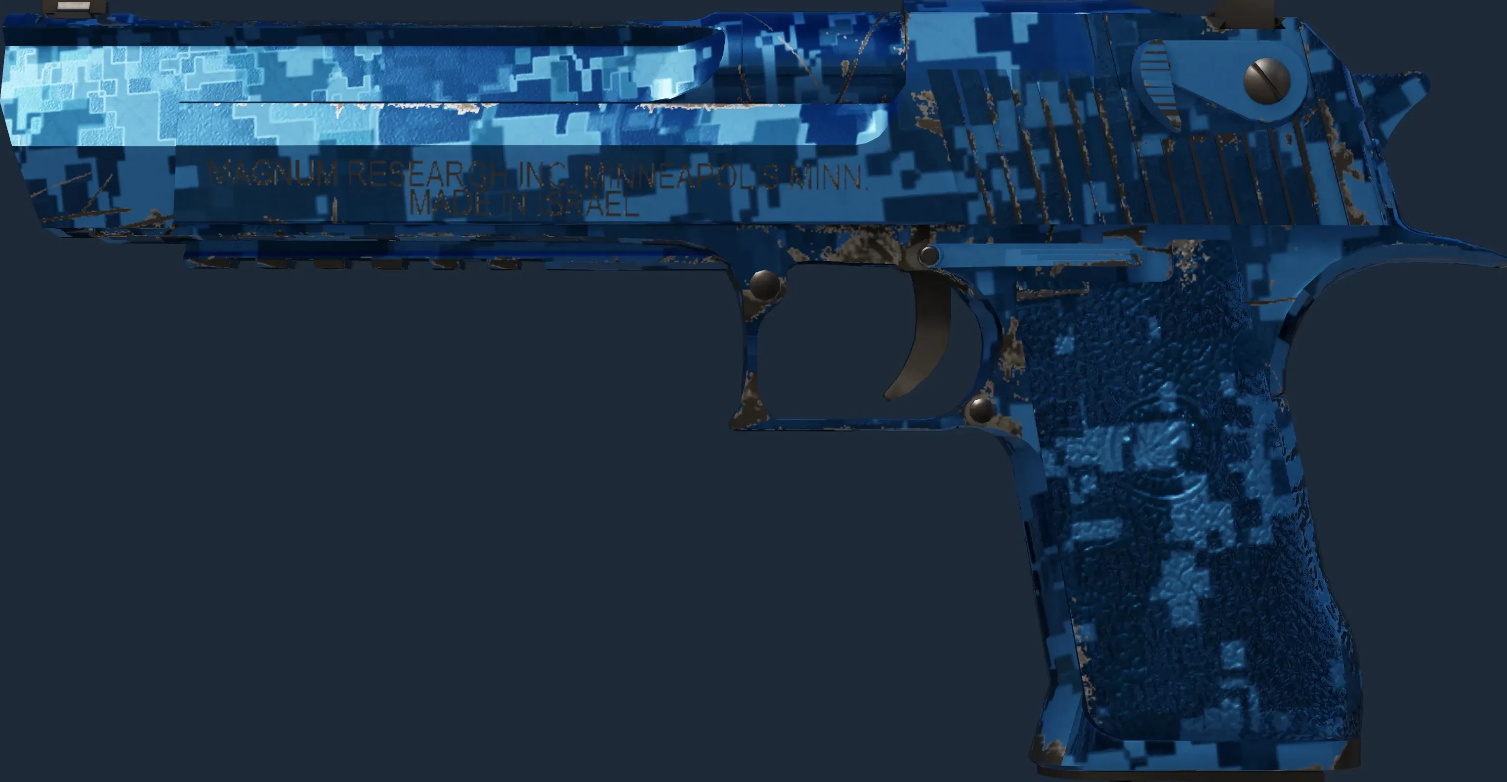 The Desert Eagle | Cobalt Disruption is a Covert grade skin for the Desert Eagle in Counter-Strike 2. It features a Custom Paint Job finish and was designed by Valve.