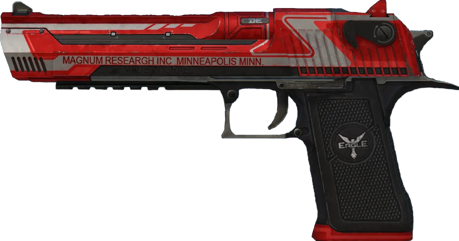 As expensive as it is powerful, the pistols/desert-eagle" class="text-orange-500 hover:underline underline-offset-4 decoration-orange-500/30">Desert Eagle is an iconic pistol that is difficult to master but surprisingly accurate at long range. A custom paint job with a bright red base and white detailing has been applied. _Man your stations_