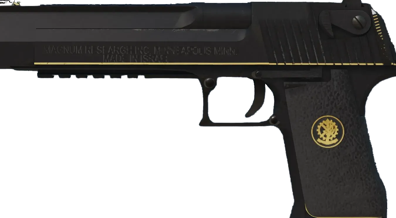 As expensive as it is powerful, the pistols/desert-eagle" class="text-orange-500 hover:underline underline-offset-4 decoration-orange-500/30">Desert Eagle is an iconic pistol that is difficult to master but surprisingly accurate at long range. It has been painted with dark, metallic paint and pale yellow accents.