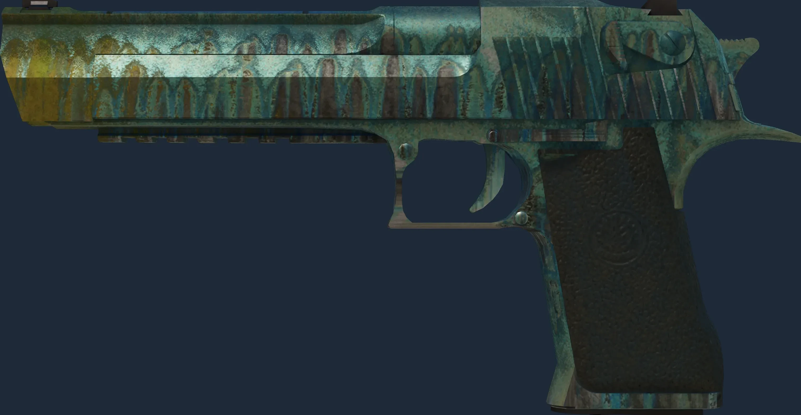 The Hand Cannon has a float value range from 0.00 to 1.00, making it available in 5 wear conditions: Factory New, Minimal Wear, Field-Tested, Well-Worn, Battle-Scarred.