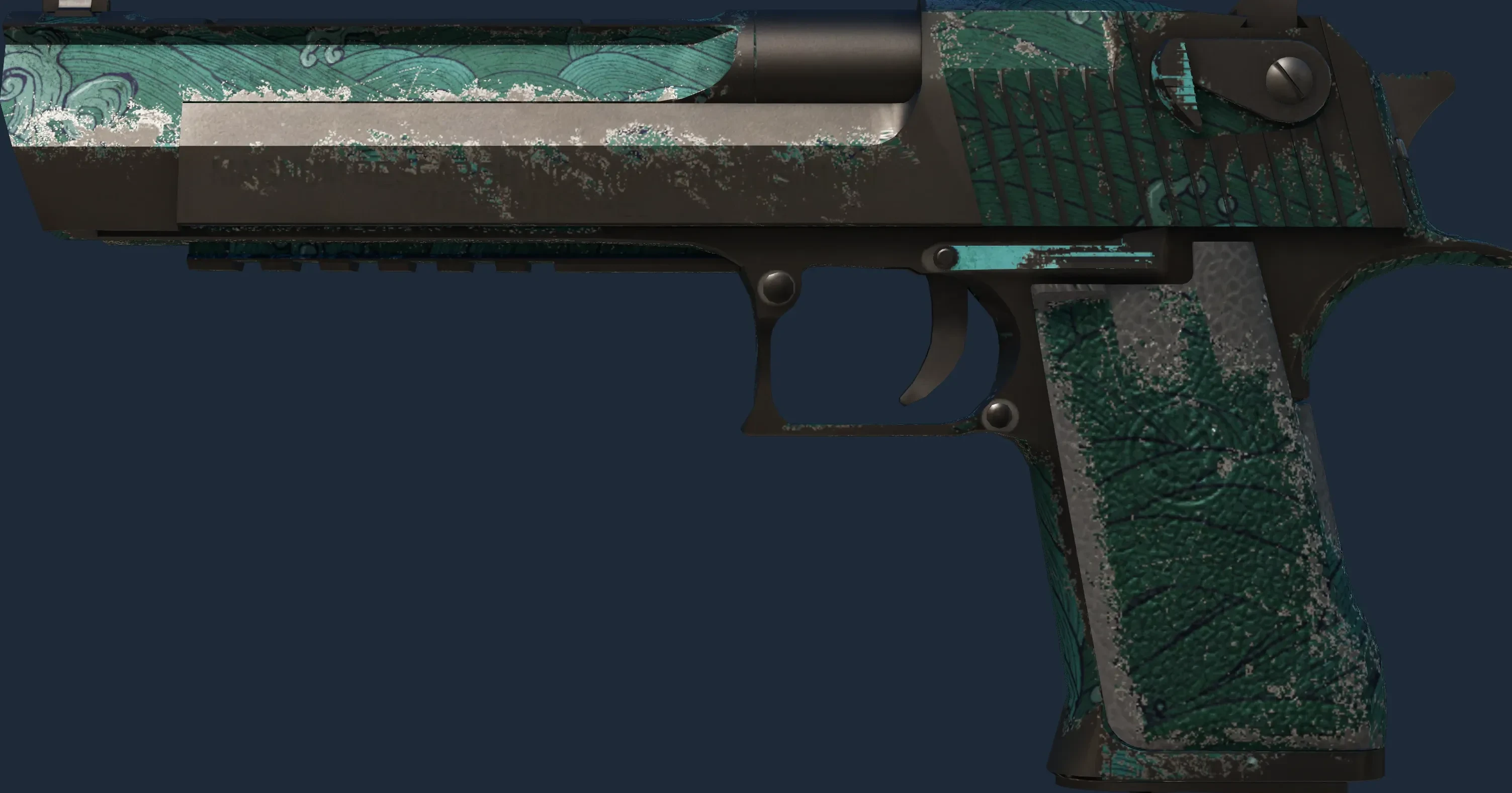 The Desert Eagle | Midnight Storm is a Covert grade skin for the Desert Eagle in Counter-Strike 2. It features a Custom Paint Job finish and was designed by Valve.