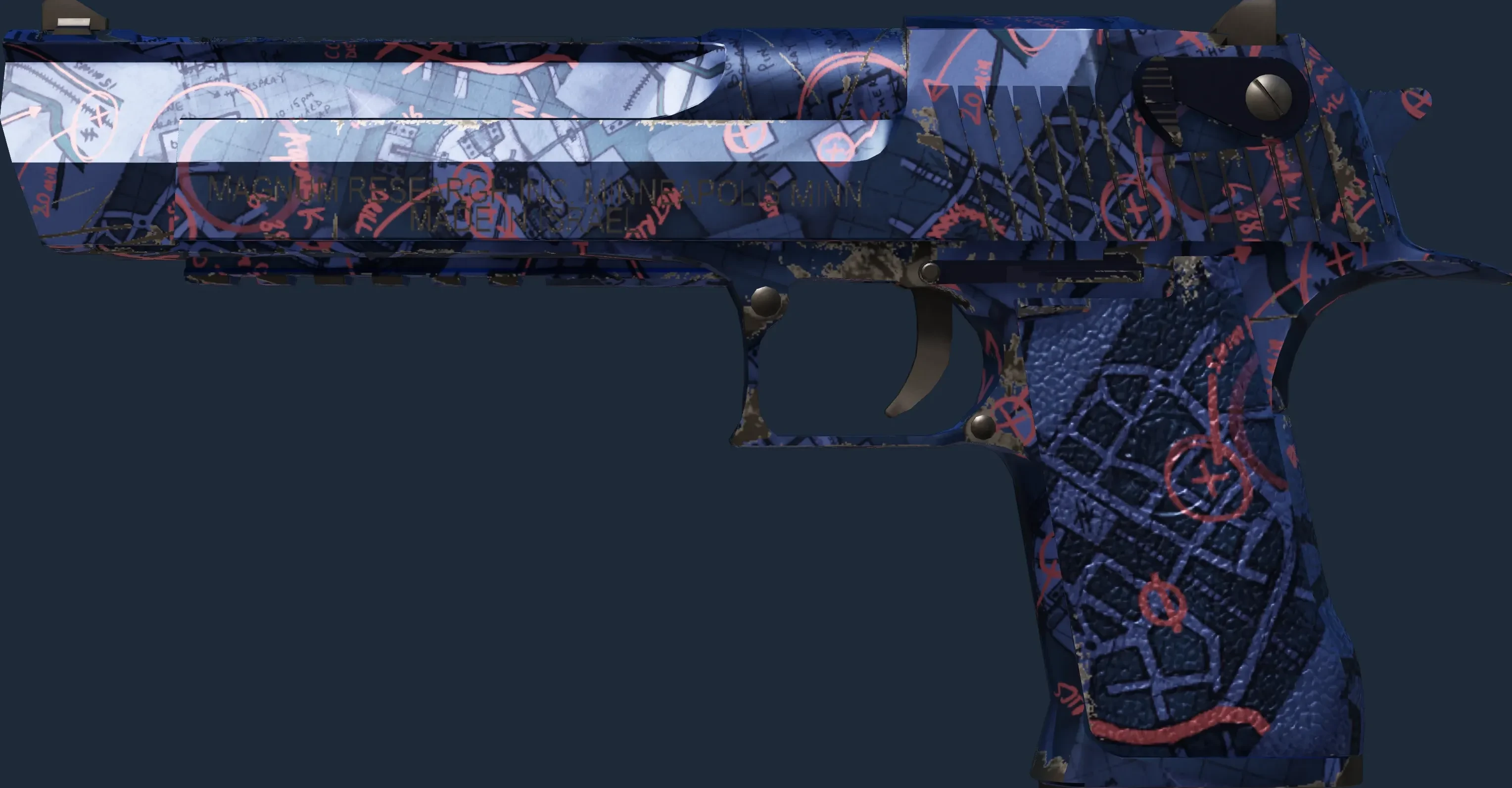 The Desert Eagle | Night Heist is a Covert grade skin for the Desert Eagle in Counter-Strike 2. It features a Custom Paint Job finish and was designed by Valve.