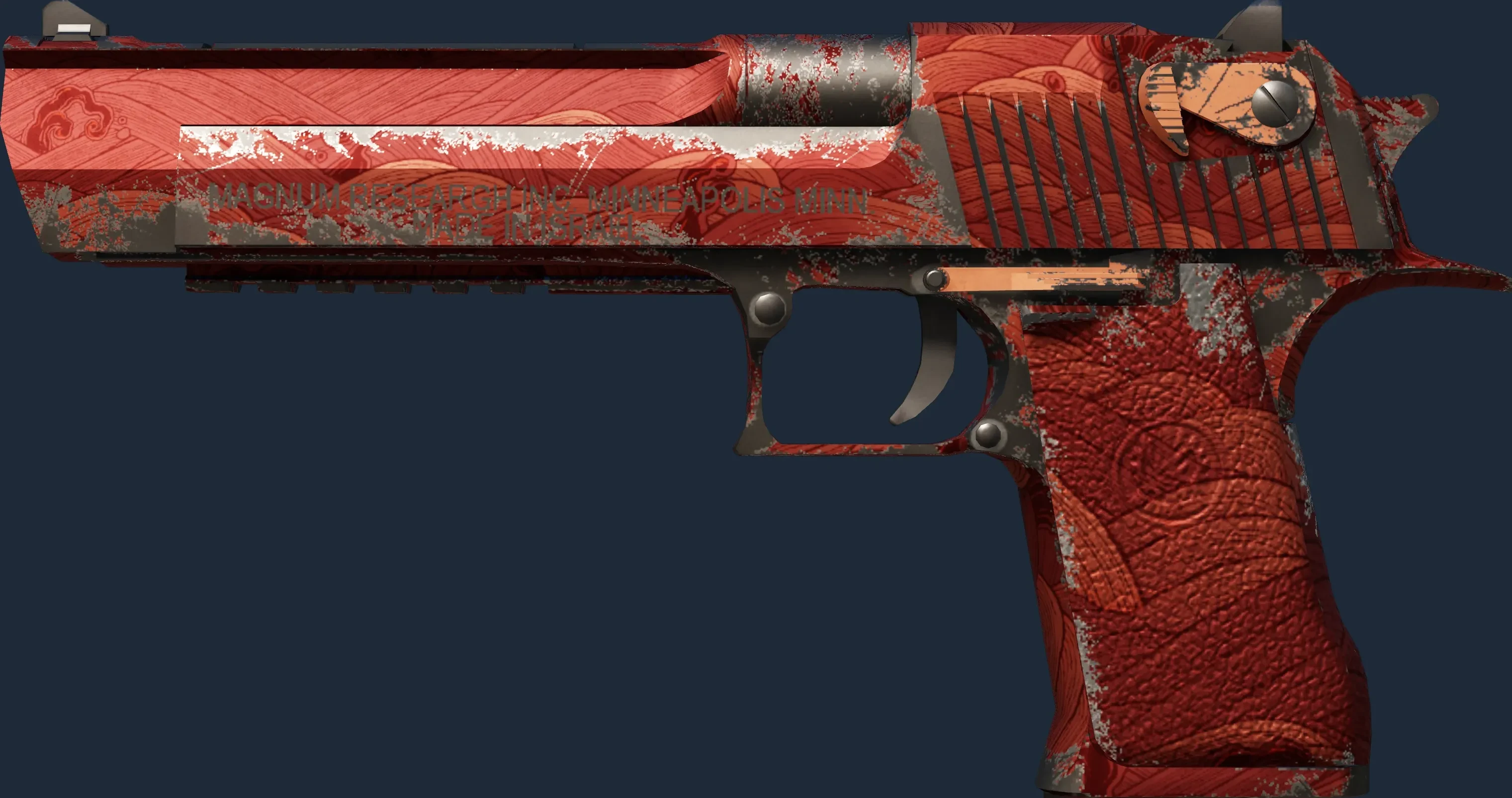 The Desert Eagle | Sunset Storm 1 is a Covert grade skin for the Desert Eagle in Counter-Strike 2. It features a Custom Paint Job finish and was designed by Valve.