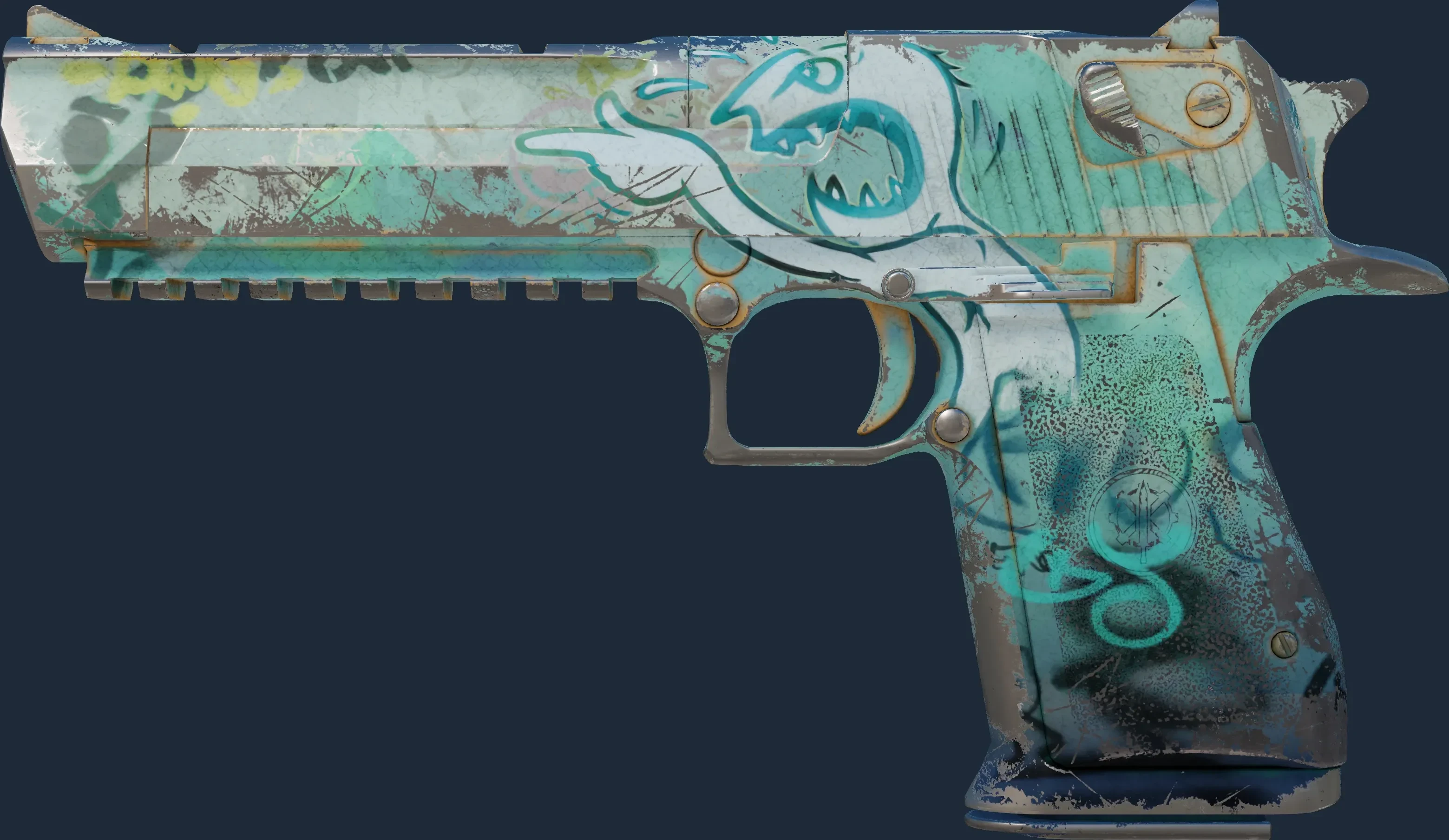 The Desert Eagle | Tilted is a Covert grade skin for the Desert Eagle in Counter-Strike 2. It features a Custom Paint Job finish and was designed by Valve.