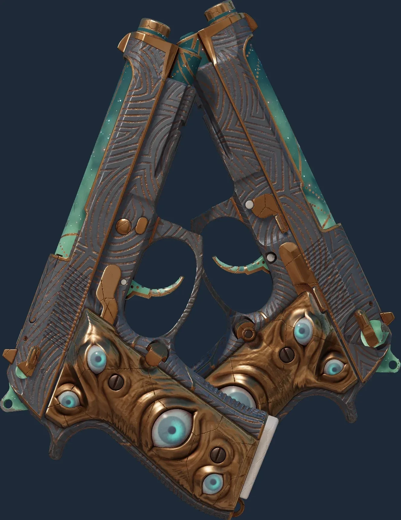 The Dual Berettas | Angel Eyes is a Covert grade skin for the Dual Berettas in Counter-Strike 2. It features a Custom Paint Job finish and was designed by Chemical Alia.