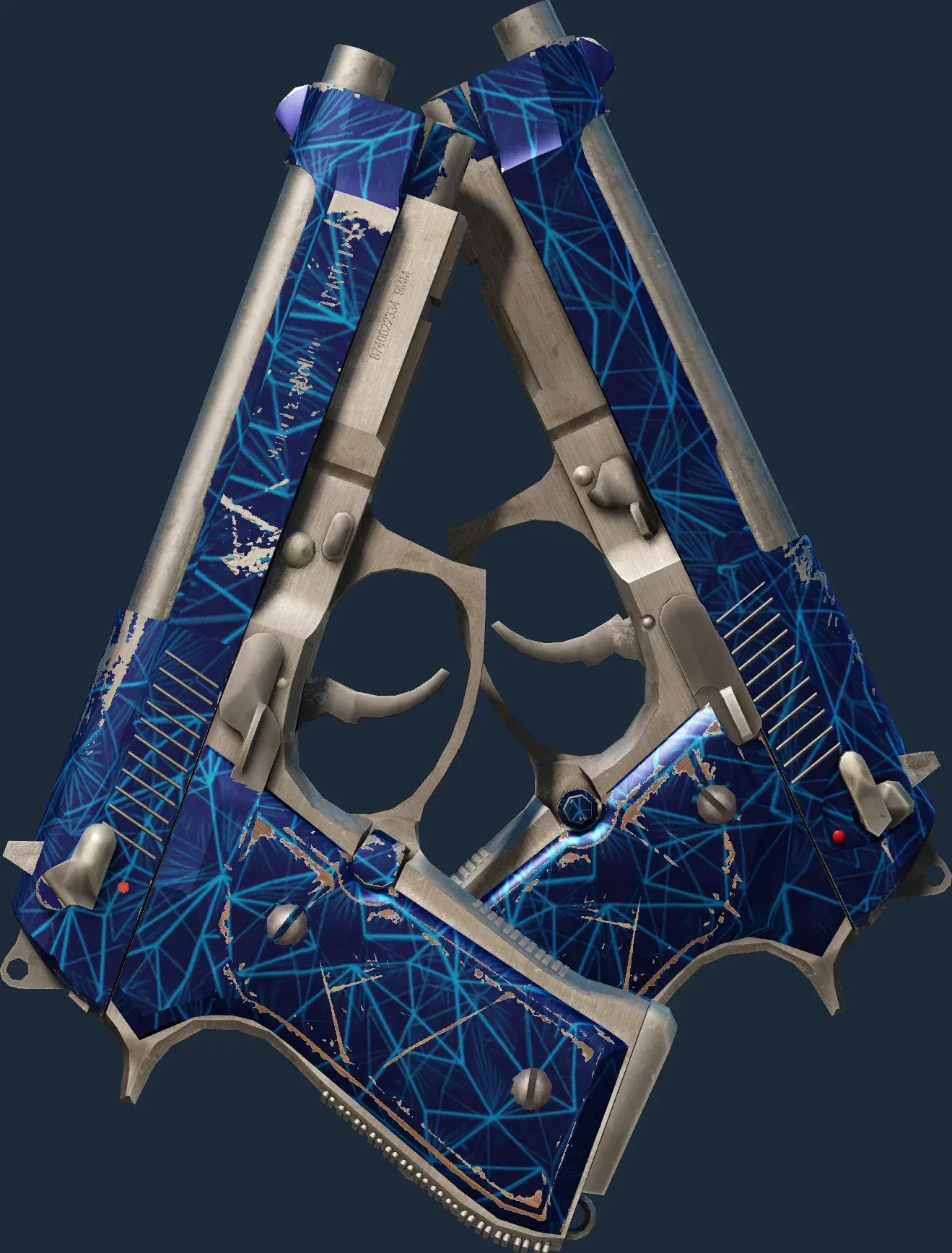 The Dual Berettas | Cobalt Quartz is a Covert grade skin for the Dual Berettas in Counter-Strike 2. It features a Custom Paint Job finish and was designed by Valve.