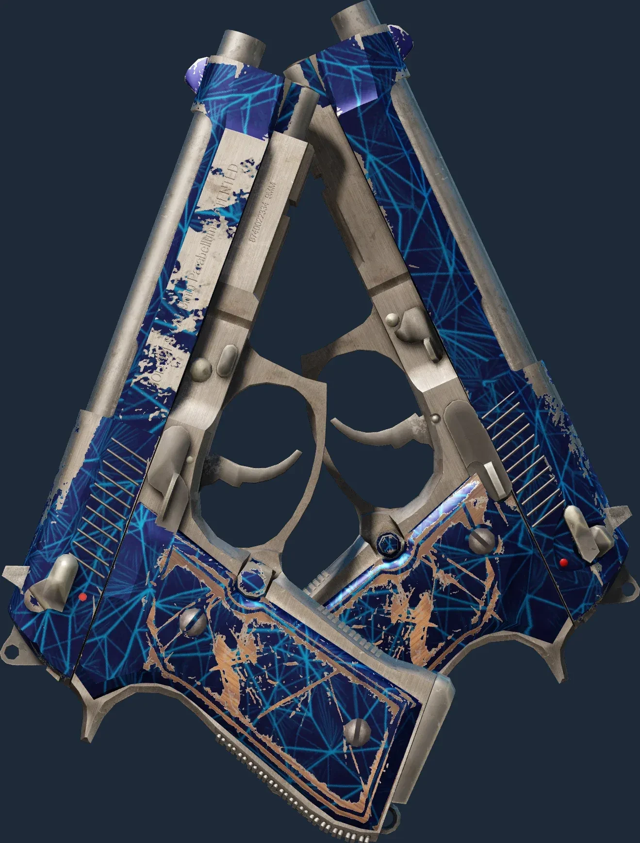 The Dual Berettas | Cobalt Quartz is a Covert grade skin for the Dual Berettas in Counter-Strike 2. It features a Custom Paint Job finish and was designed by Valve.