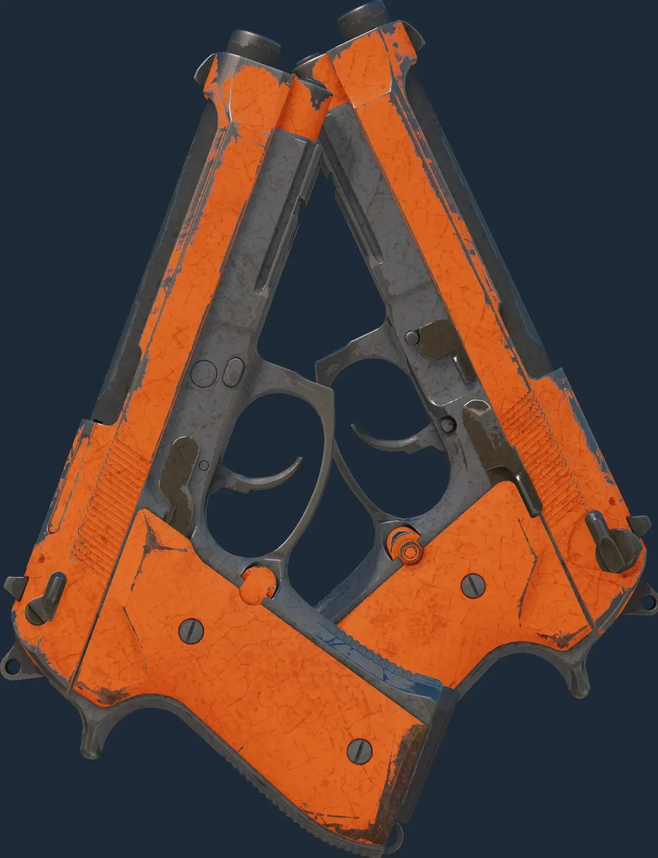 The Dual Berettas | Demolition is a Covert grade skin for the Dual Berettas in Counter-Strike 2. It features a Custom Paint Job finish and was designed by Valve.
