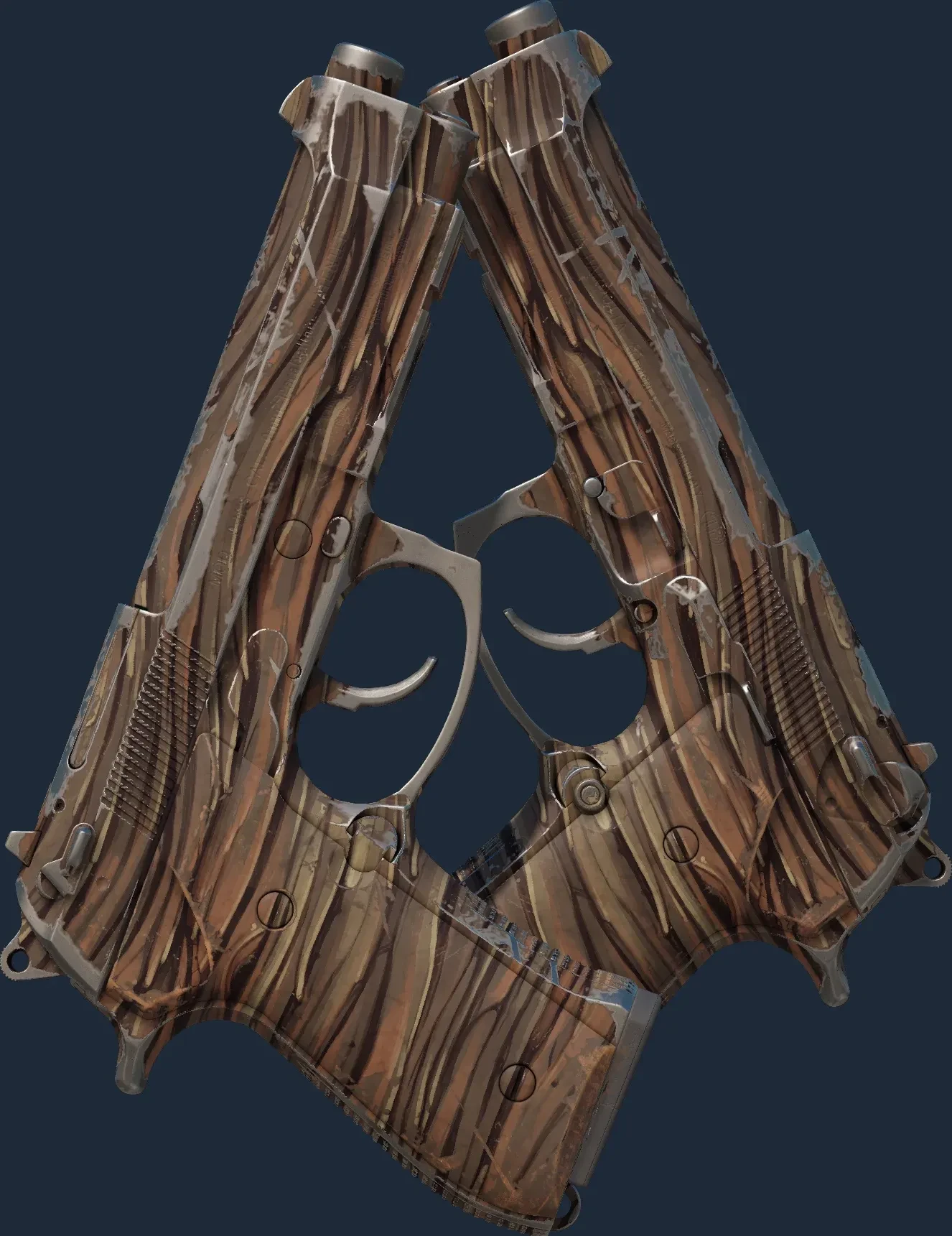 The Dual Berettas | Drift Wood is a Covert grade skin for the Dual Berettas in Counter-Strike 2. It features a Custom Paint Job finish and was designed by Valve.