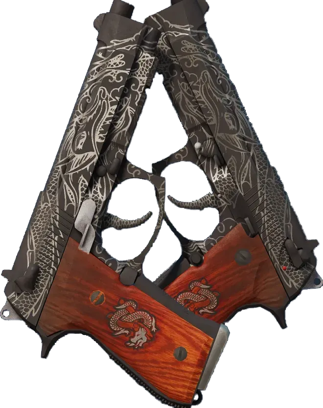 The Dual Berettas | Dualing Dragons is one of 420 other N/A skins. The rarity of the skin is Mil-Spec Grade, which makes the Dualing Dragons a common drop with an estimated drop chance of only N/A%.