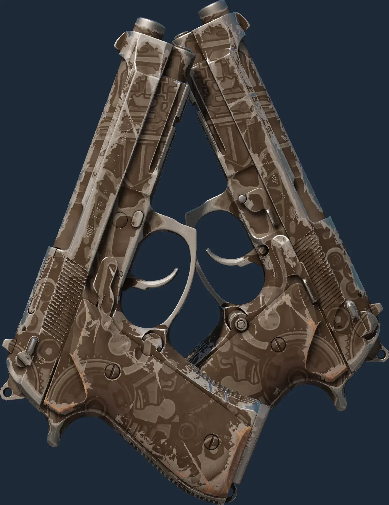 The Dual Berettas | Oil Change is a Covert grade skin for the Dual Berettas in Counter-Strike 2. It features a Custom Paint Job finish and was designed by Valve.