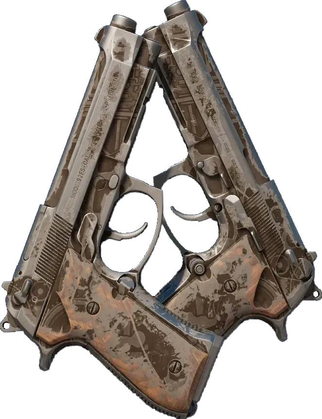 The Dual Berettas | Oil Change was first introduced to CS2 4 years ago, on Invalid Date. It was released as part of the Shanghai 2024 Vertigo Souvenir Package, alongside the "N/A" update. The skin was created by the community designer "N/A".
