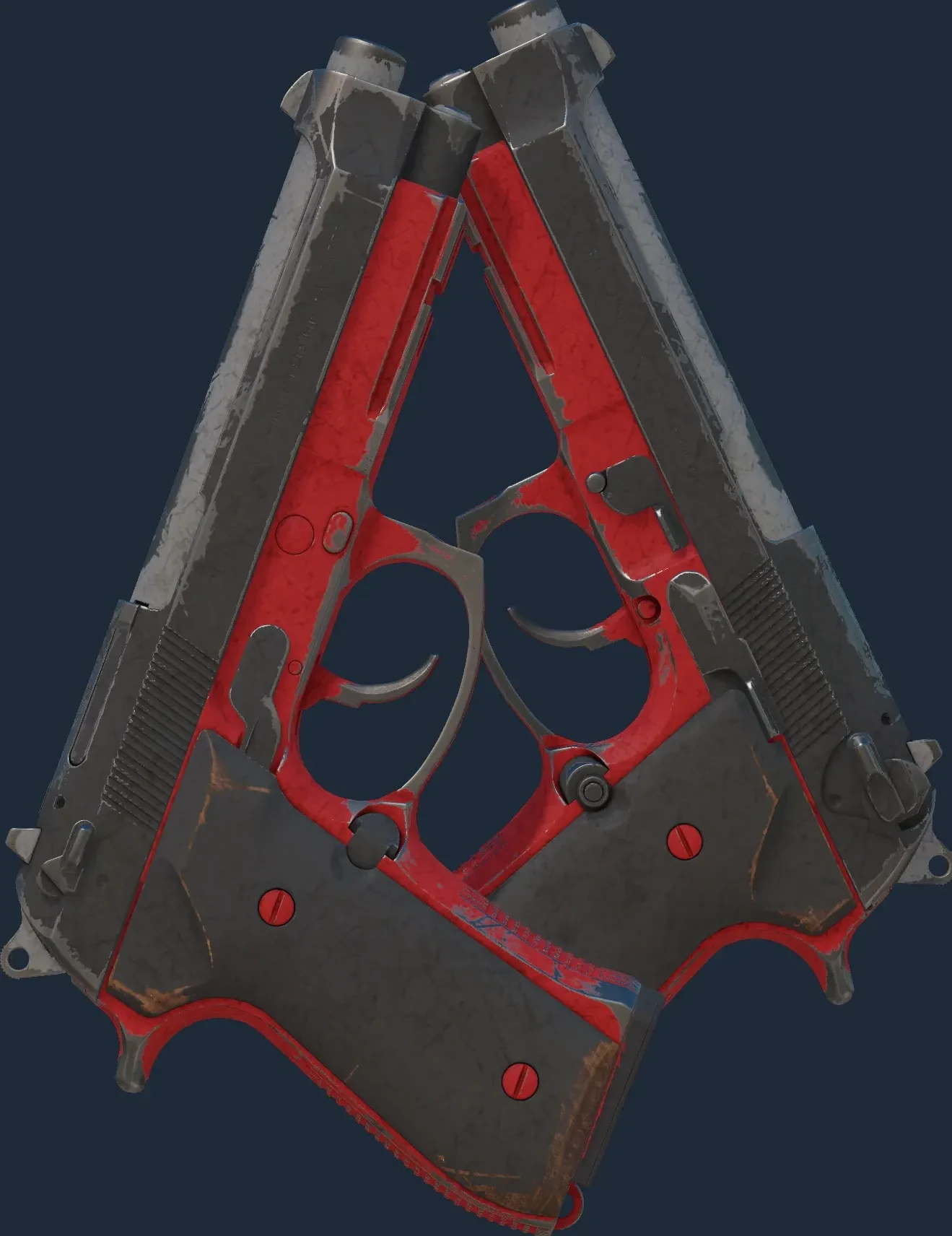 The Dual Berettas | Panther is a Covert grade skin for the Dual Berettas in Counter-Strike 2. It features a Custom Paint Job finish and was designed by Valve.