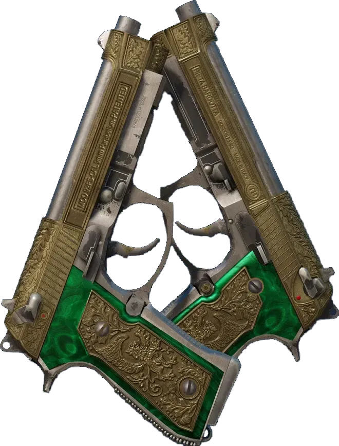 Firing two large-mag Berettas at once will lower accuracy and increase load times. On the bright side, you'll get to fire two large-mag Berettas at once. Between the green dyed pearl handled grips, gryphon side plates, and laser etched slide; these pistols redefine elegance. _Face off and release the doves_