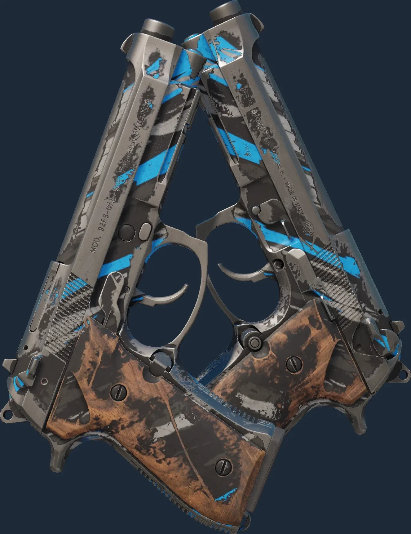 The Dual Berettas | Shred is a Covert grade skin for the Dual Berettas in Counter-Strike 2. It features a Custom Paint Job finish and was designed by SHPR.