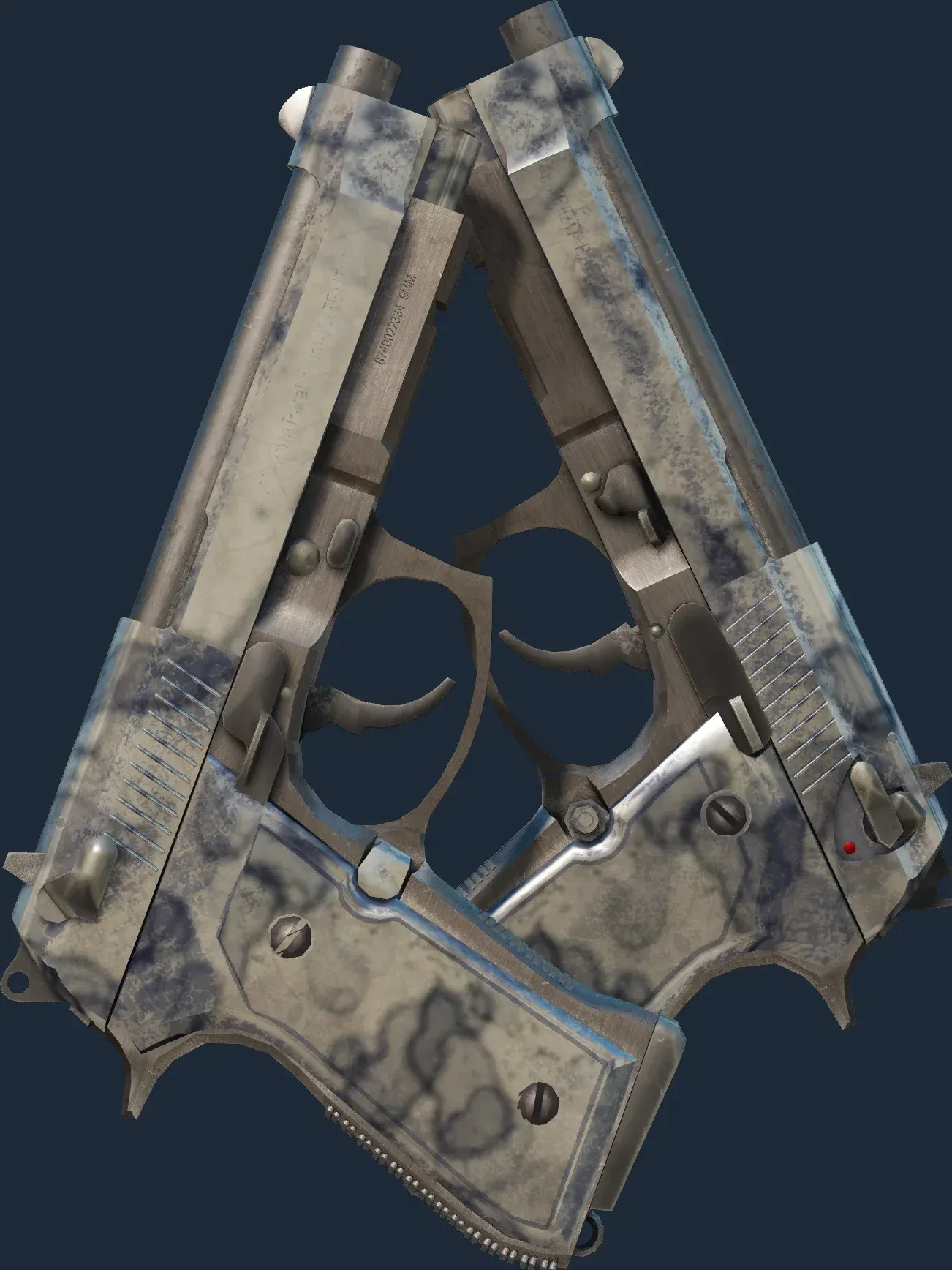 The Dual Berettas | Stained is a Covert grade skin for the Dual Berettas in Counter-Strike 2. It features a Custom Paint Job finish and was designed by Valve.