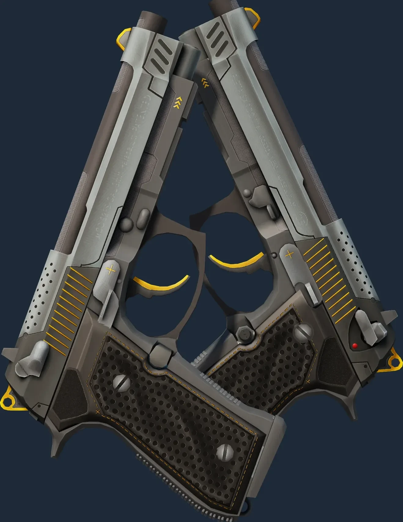 The Dual Berettas | Ventilators is a Covert grade skin for the Dual Berettas in Counter-Strike 2. It features a Custom Paint Job finish and was designed by SLIMEface.
