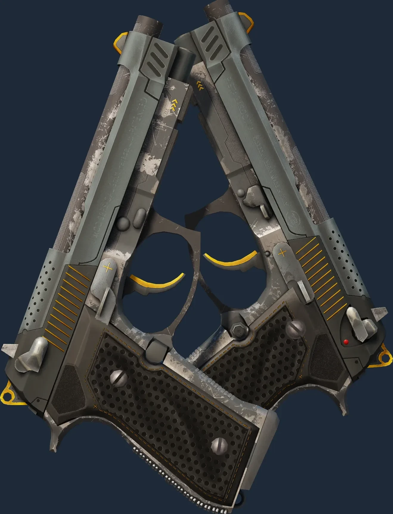 The Dual Berettas | Ventilators is a Covert grade skin for the Dual Berettas in Counter-Strike 2. It features a Custom Paint Job finish and was designed by SLIMEface.