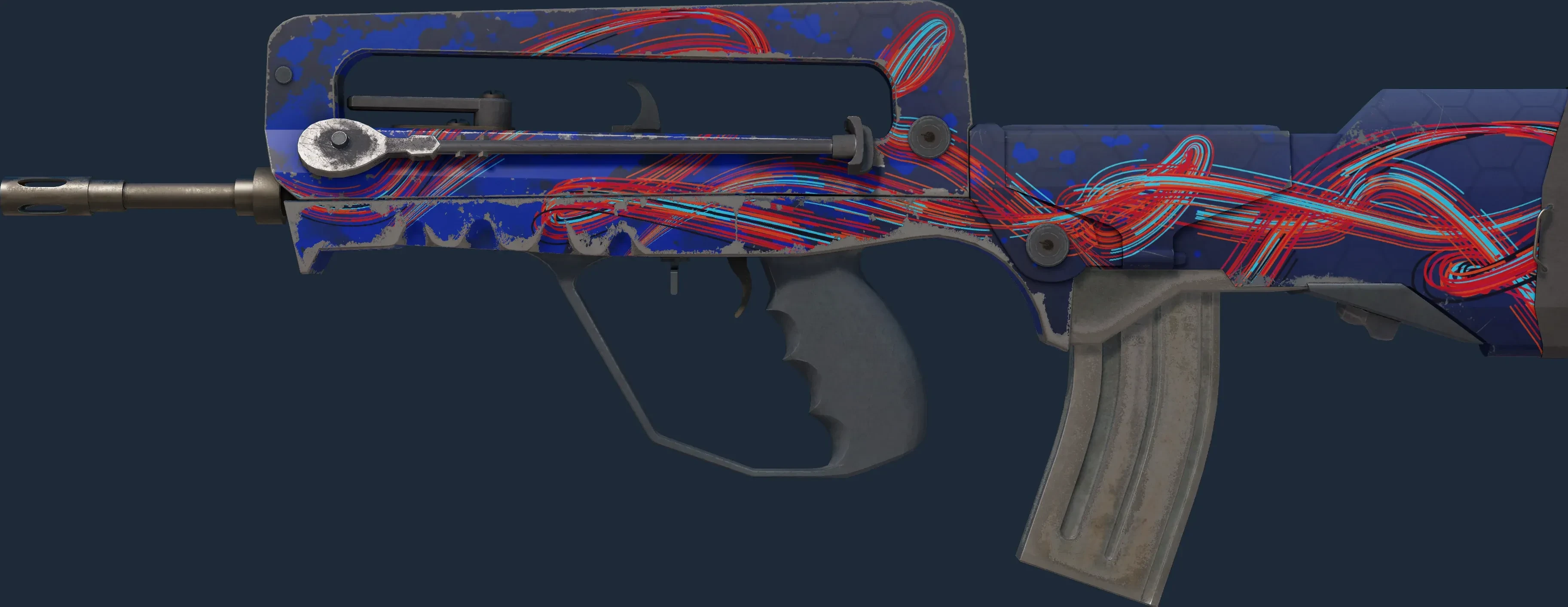 The FAMAS | Afterimage is a Covert grade skin for the FAMAS in Counter-Strike 2. It features a Custom Paint Job finish and was designed by Valve.