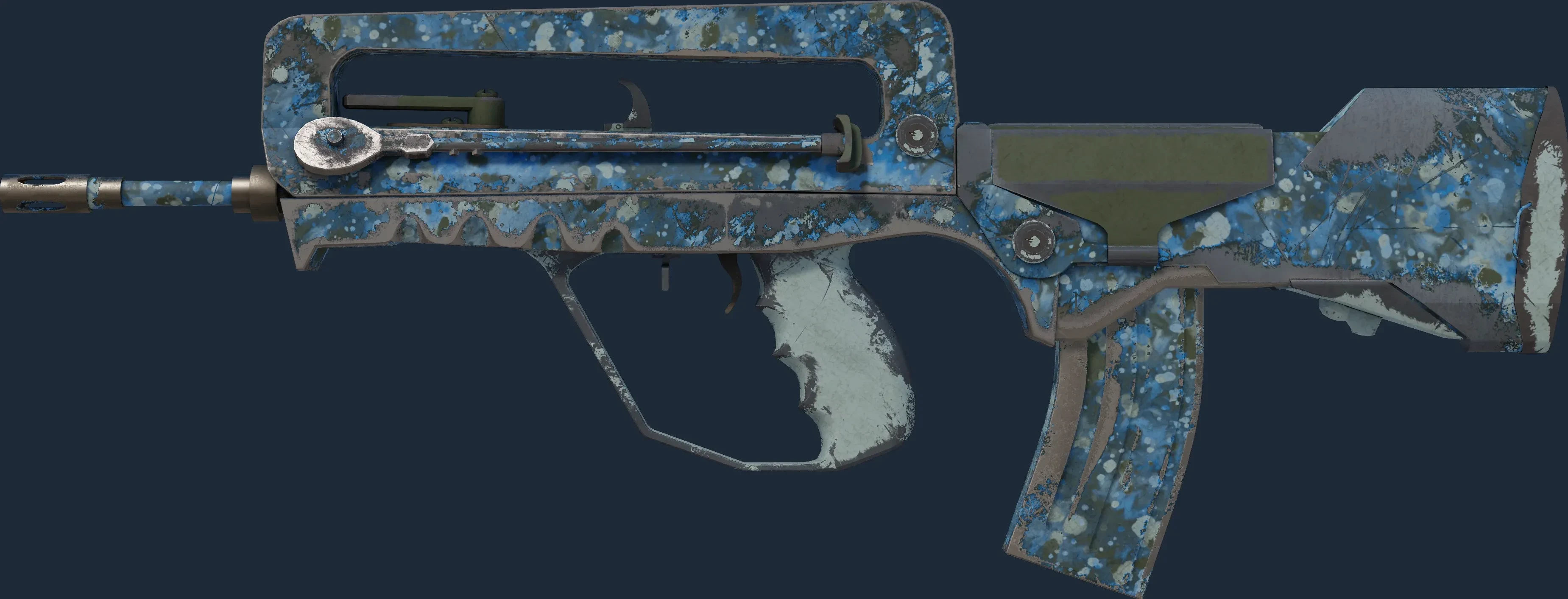 The FAMAS | Cyanospatter is a Covert grade skin for the FAMAS in Counter-Strike 2. It features a Custom Paint Job finish and was designed by Valve.