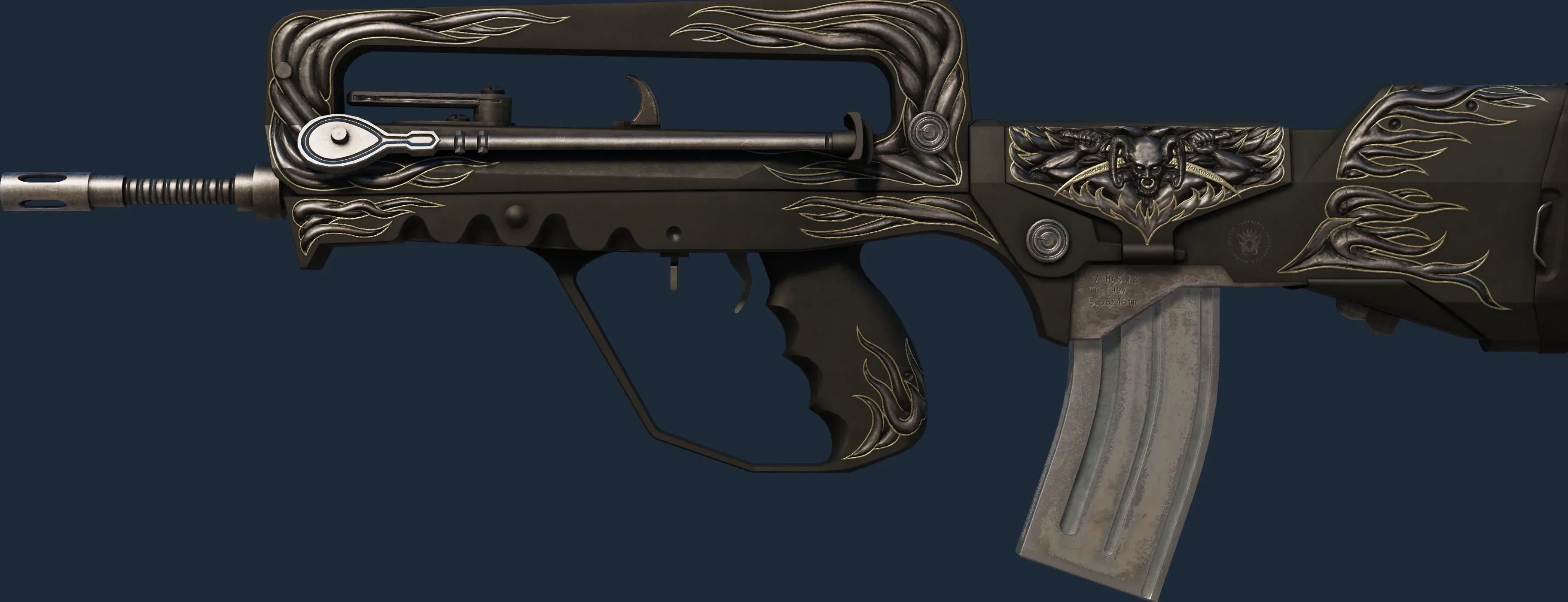 The FAMAS | Djinn is a Covert grade skin for the FAMAS in Counter-Strike 2. It features a Custom Paint Job finish and was designed by Gaunt.