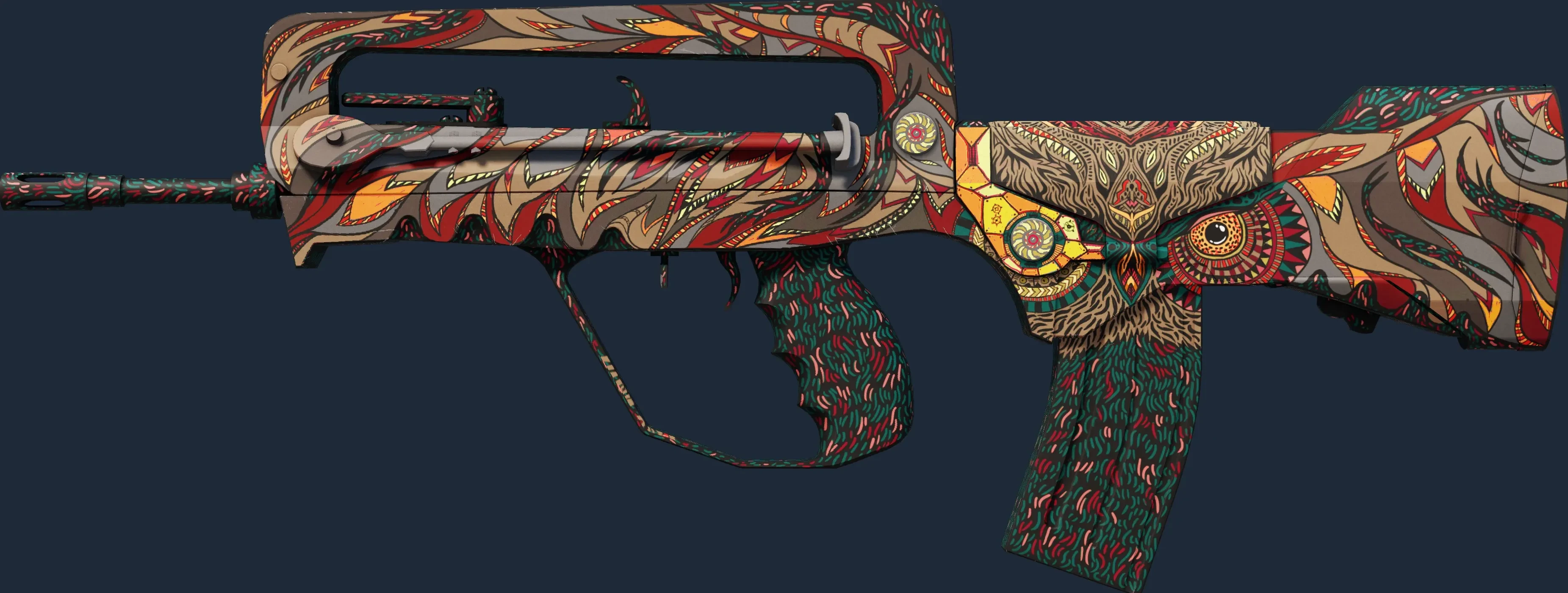 The FAMAS | Eye Of Athena is a Covert grade skin for the FAMAS in Counter-Strike 2. It features a Custom Paint Job finish and was designed by GENT.