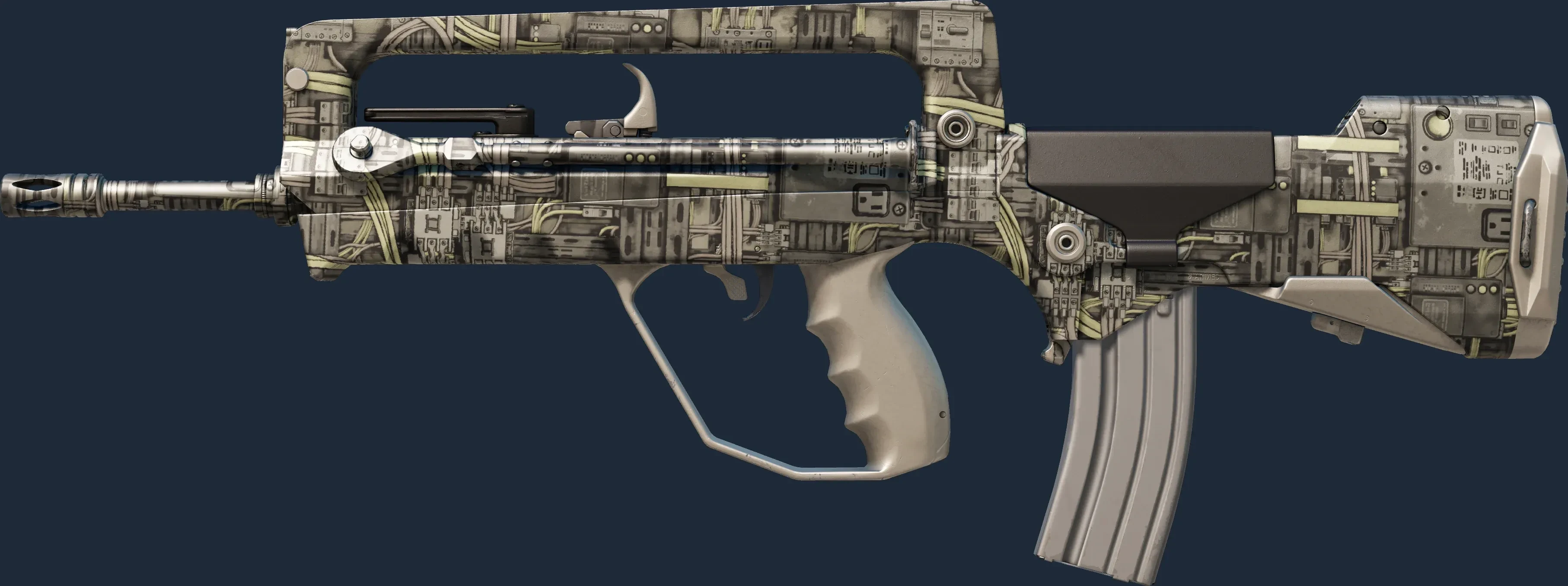 The FAMAS | Faulty Wiring is a Covert grade skin for the FAMAS in Counter-Strike 2. It features a Custom Paint Job finish and was designed by Valve.