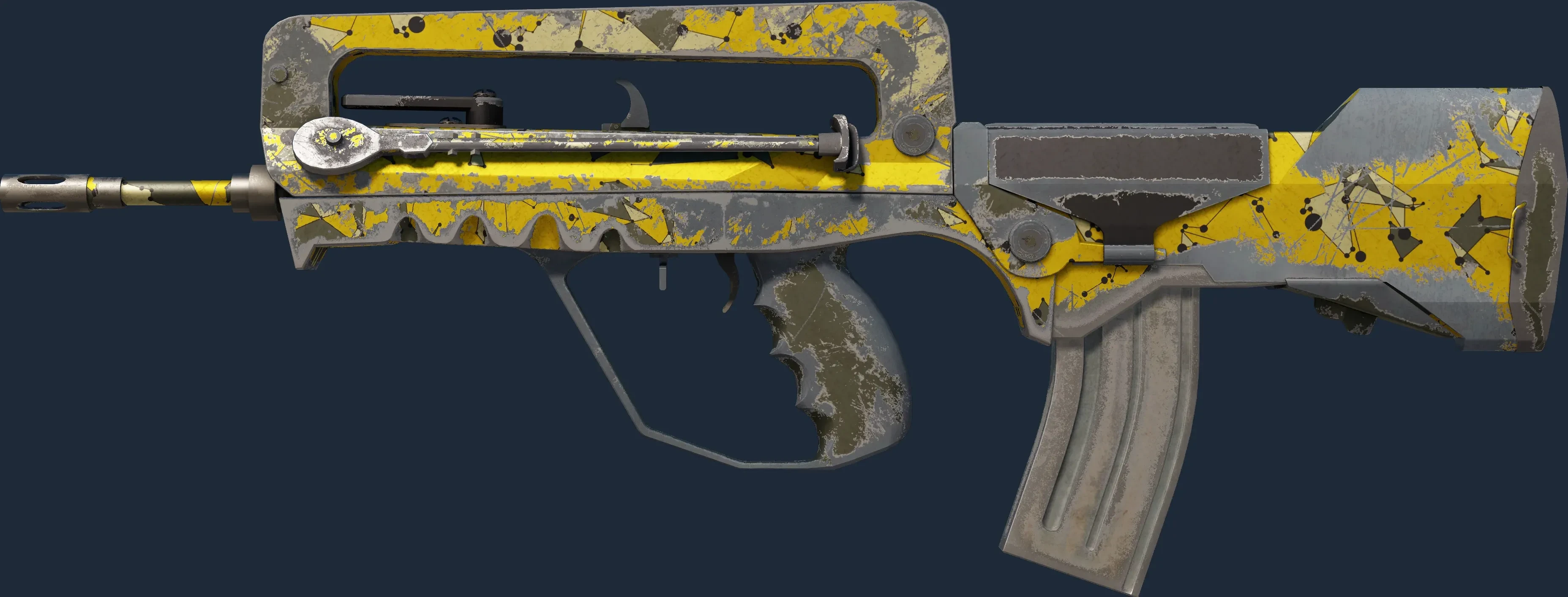 The FAMAS | Neural Net is a Covert grade skin for the FAMAS in Counter-Strike 2. It features a Custom Paint Job finish and was designed by SLIMEface.