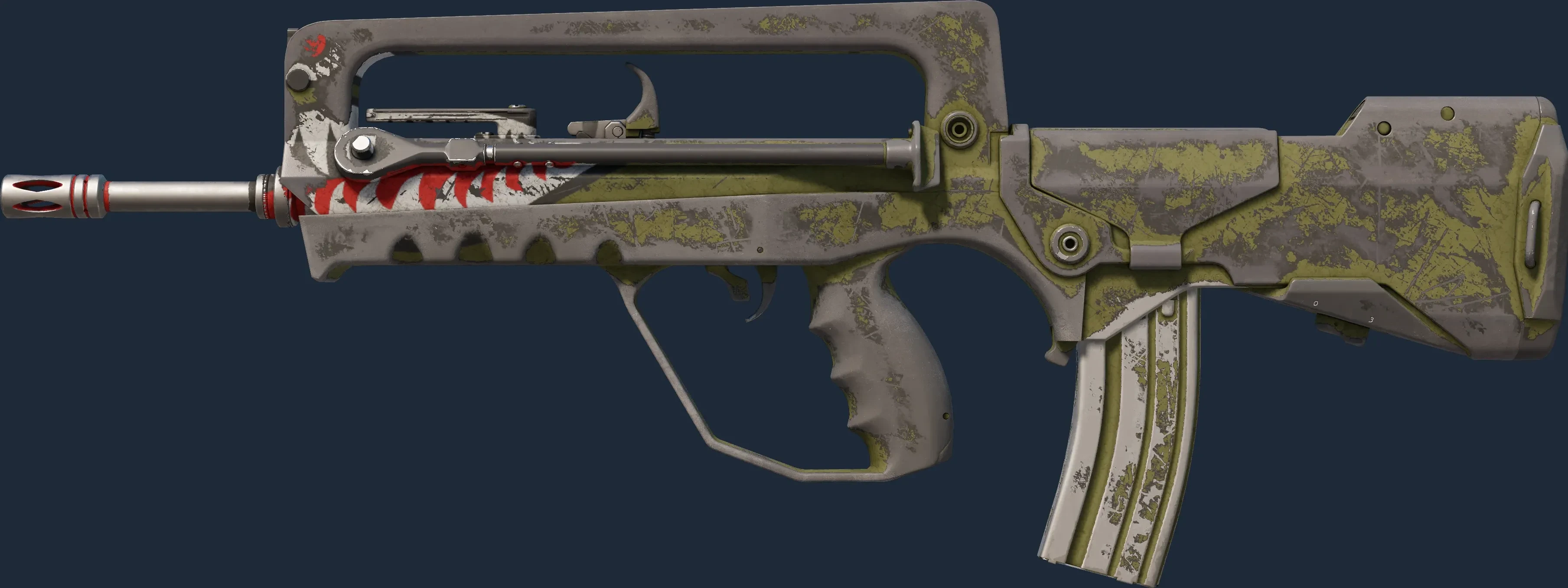 The FAMAS | Spitfire is a Covert grade skin for the FAMAS in Counter-Strike 2. It features a Custom Paint Job finish and was designed by Valve.