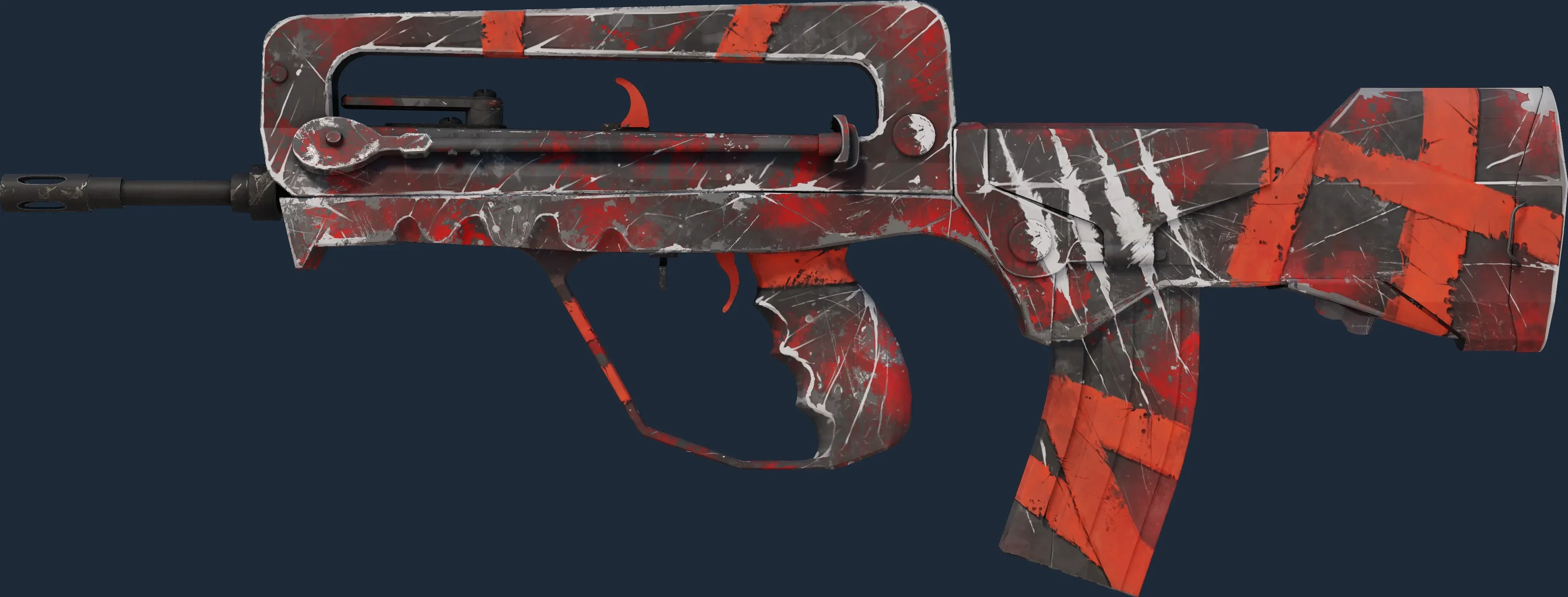 The FAMAS | Survivor Z is a Covert grade skin for the FAMAS in Counter-Strike 2. It features a Custom Paint Job finish and was designed by smkss.