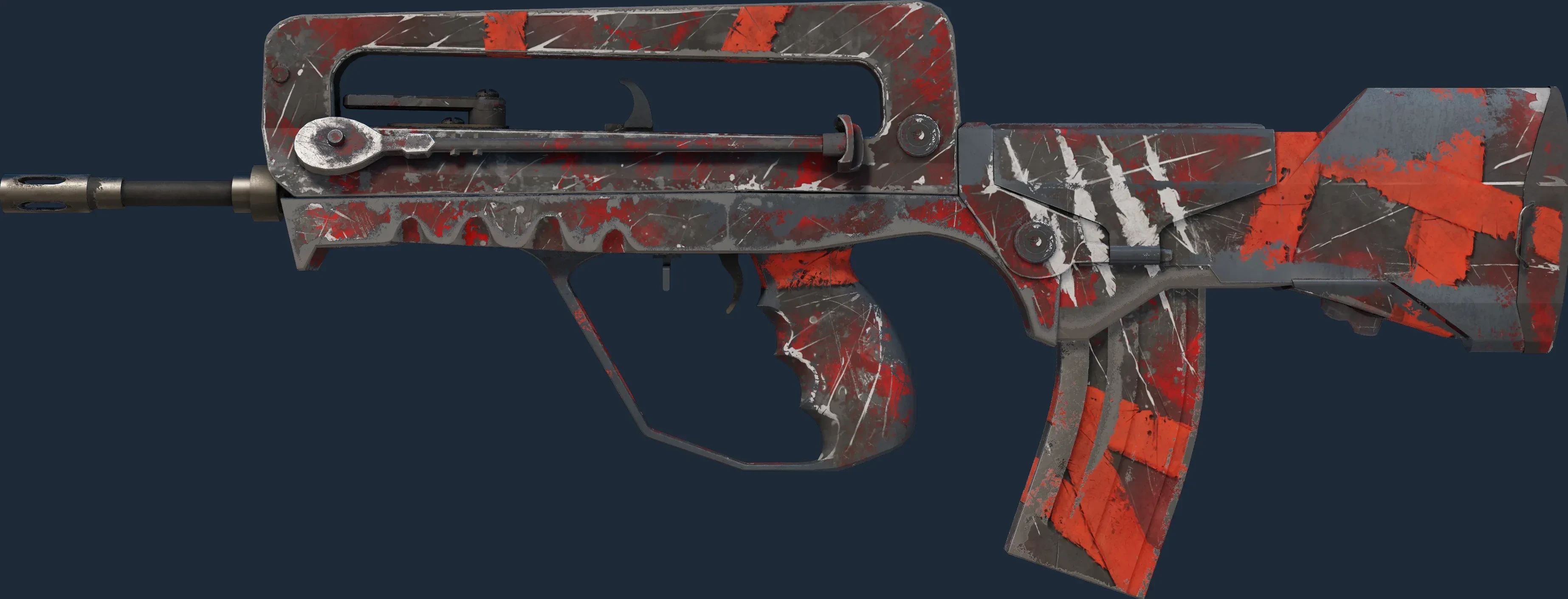 The FAMAS | Survivor Z is a Covert grade skin for the FAMAS in Counter-Strike 2. It features a Custom Paint Job finish and was designed by smkss.