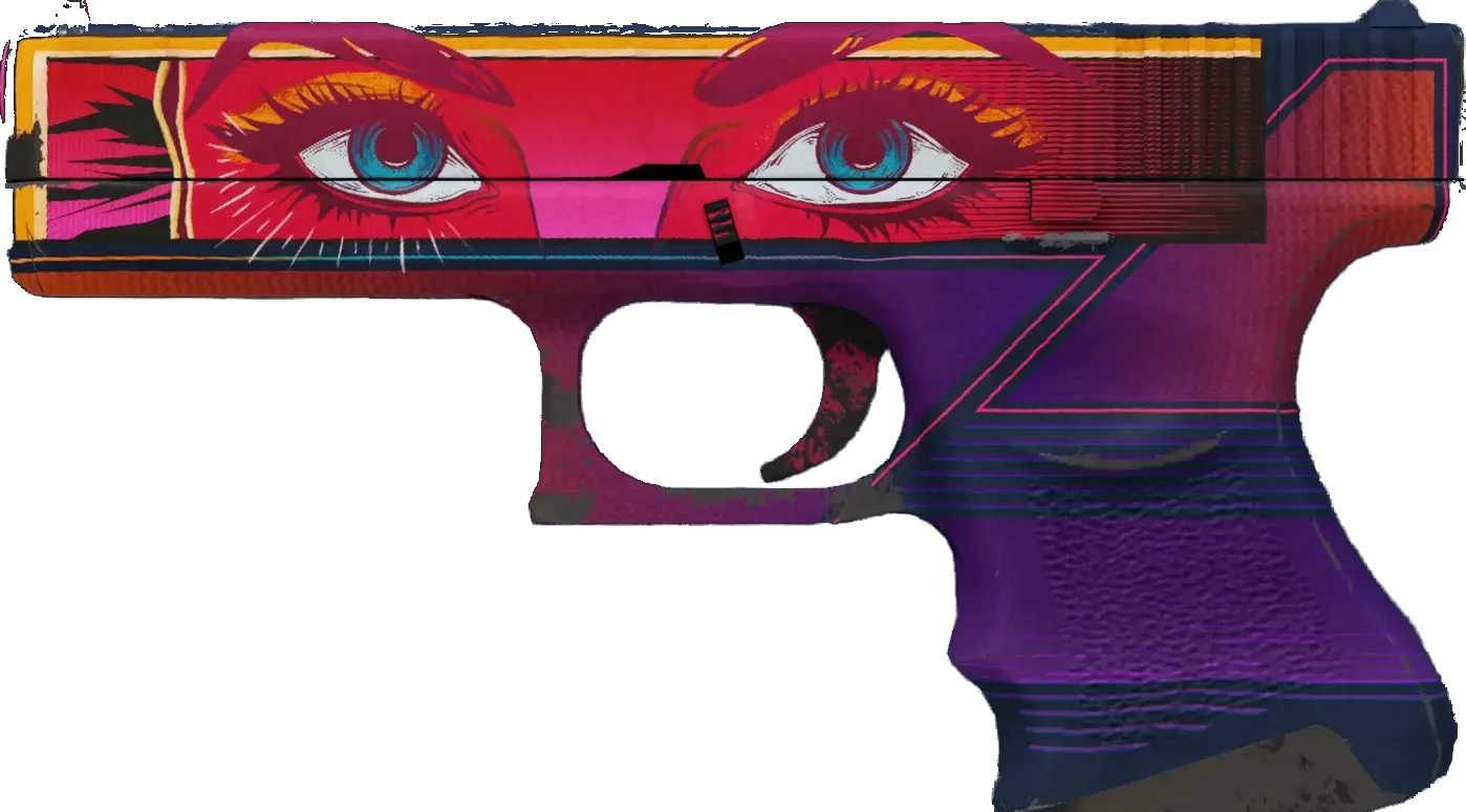 The Glock 18 is a serviceable first-round pistol that works best against unarmored opponents and is capable of firing three-round bursts. A pair of eyes grace the slide of this custom painted, Pop art inspired Glock. _"Look at me while I'm shooting at you!"_