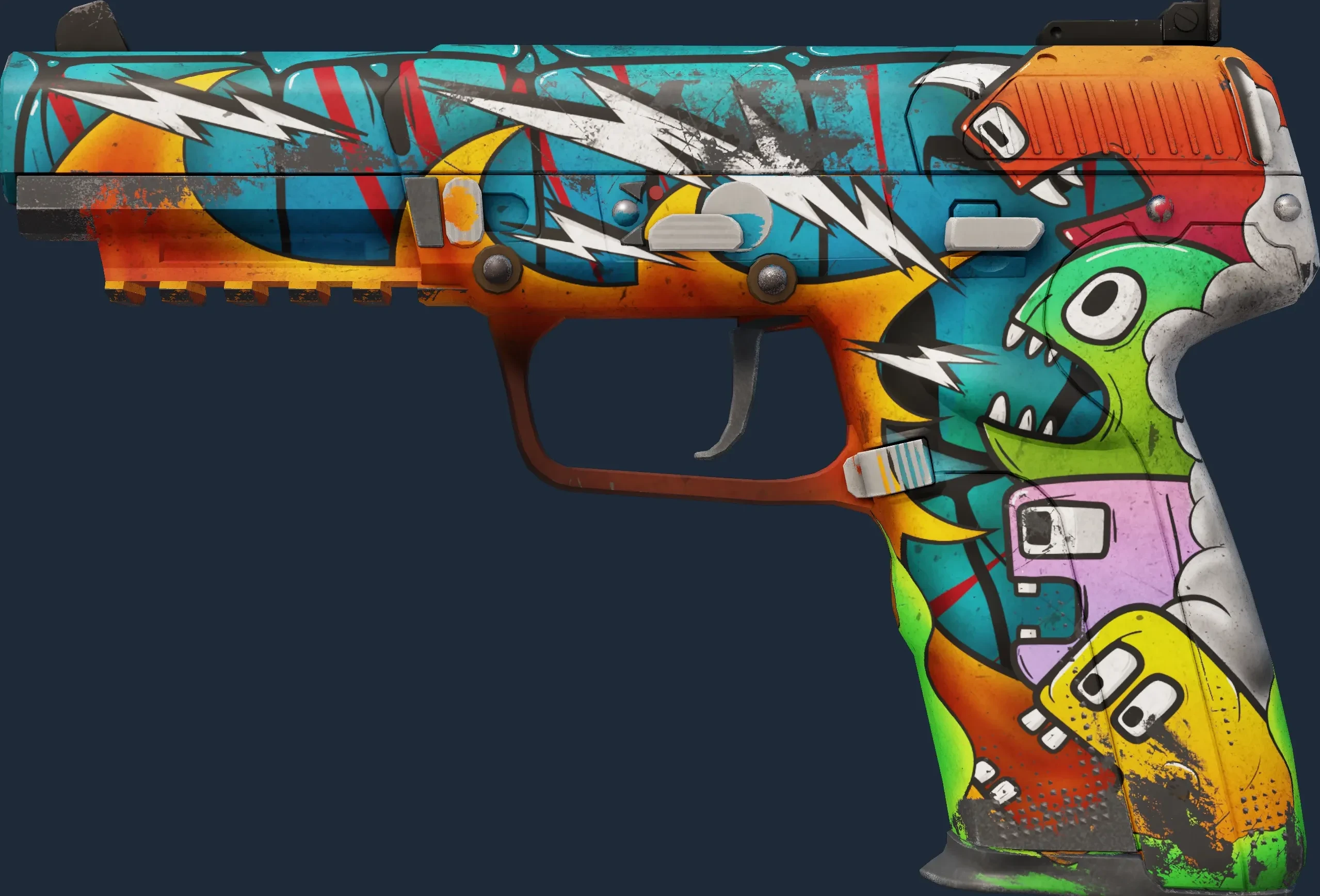 The Five-SeveN | Angry Mob is a Covert grade skin for the Five-SeveN in Counter-Strike 2. It features a Custom Paint Job finish and was designed by SHPR.