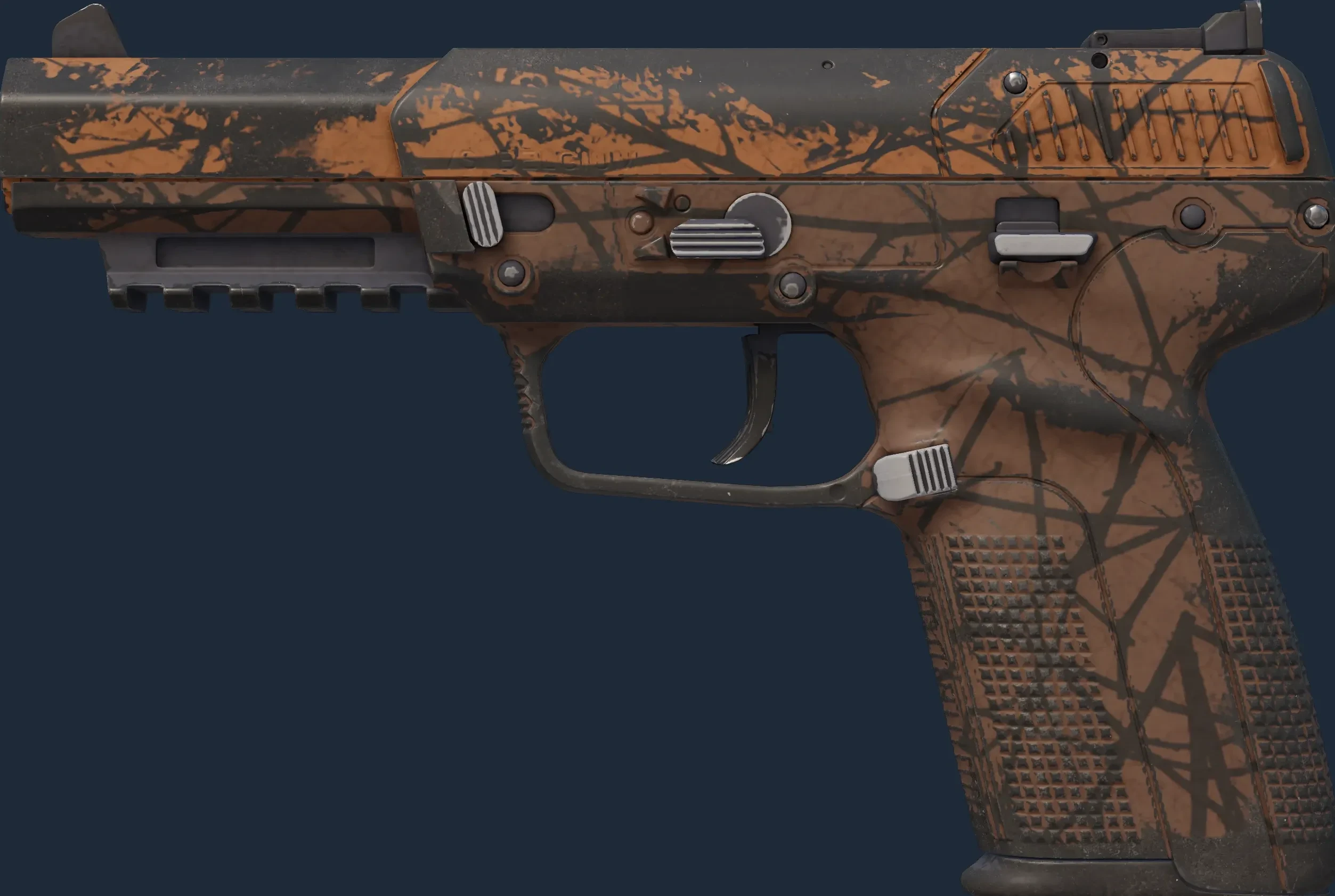 The Five-SeveN | Autumn Thicket is a Covert grade skin for the Five-SeveN in Counter-Strike 2. It features a Custom Paint Job finish and was designed by Valve.