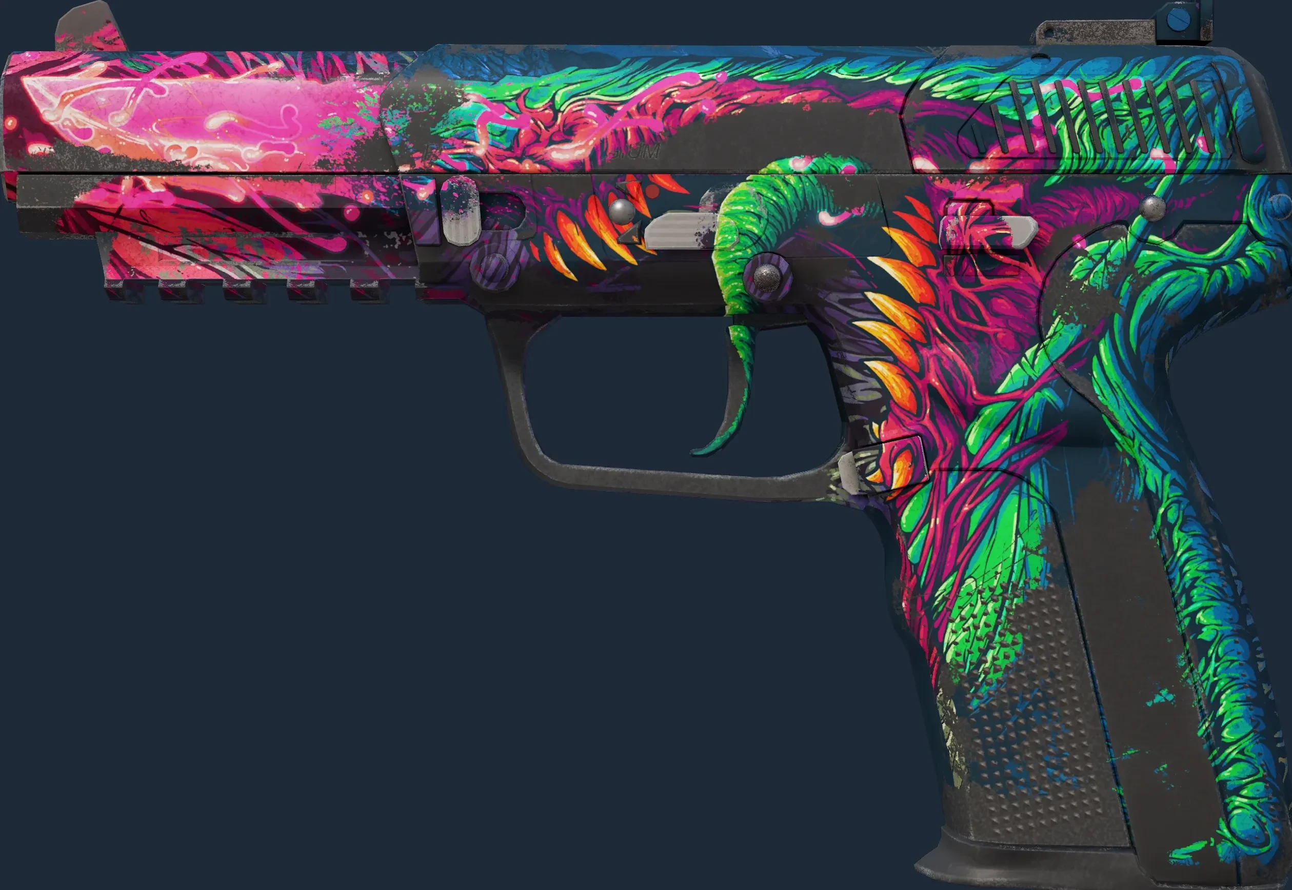 The Five-SeveN | Hyper Beast is a Covert grade skin for the Five-SeveN in Counter-Strike 2. It features a Custom Paint Job finish and was designed by frontaLOBE.
