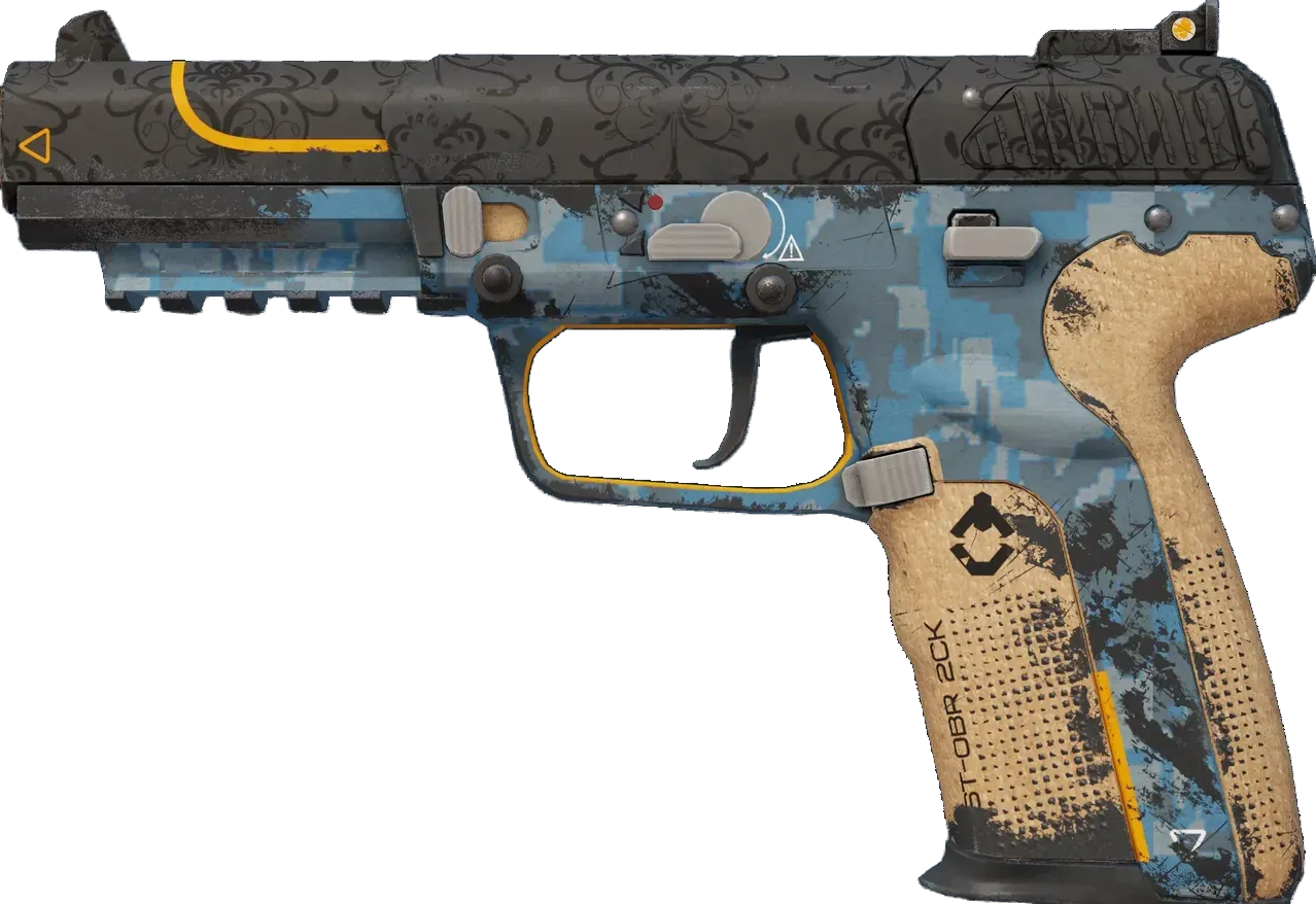 Highly accurate and armor-piercing, the pricy Five-Seven is a slow-loader that compensates with a generous 20-round magazine and forgiving recoil. It has been given a light blue DDPAT hydrographic as well as a custom painted slide. _I don't profit from war, I profit from the human condition... - Booth, Arms Dealer_