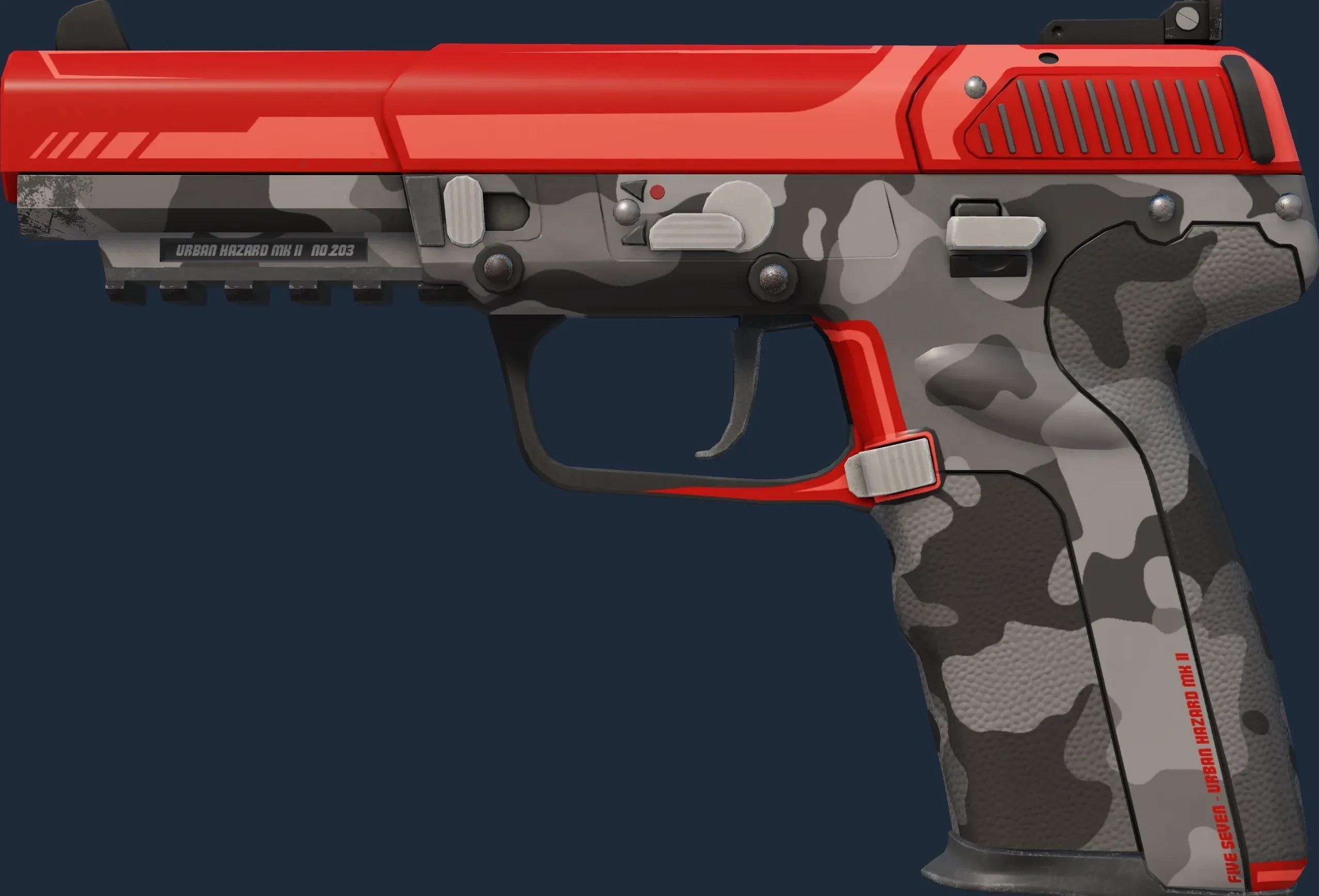 The Five-SeveN | Urban Hazard is a Covert grade skin for the Five-SeveN in Counter-Strike 2. It features a Custom Paint Job finish and was designed by Valve.