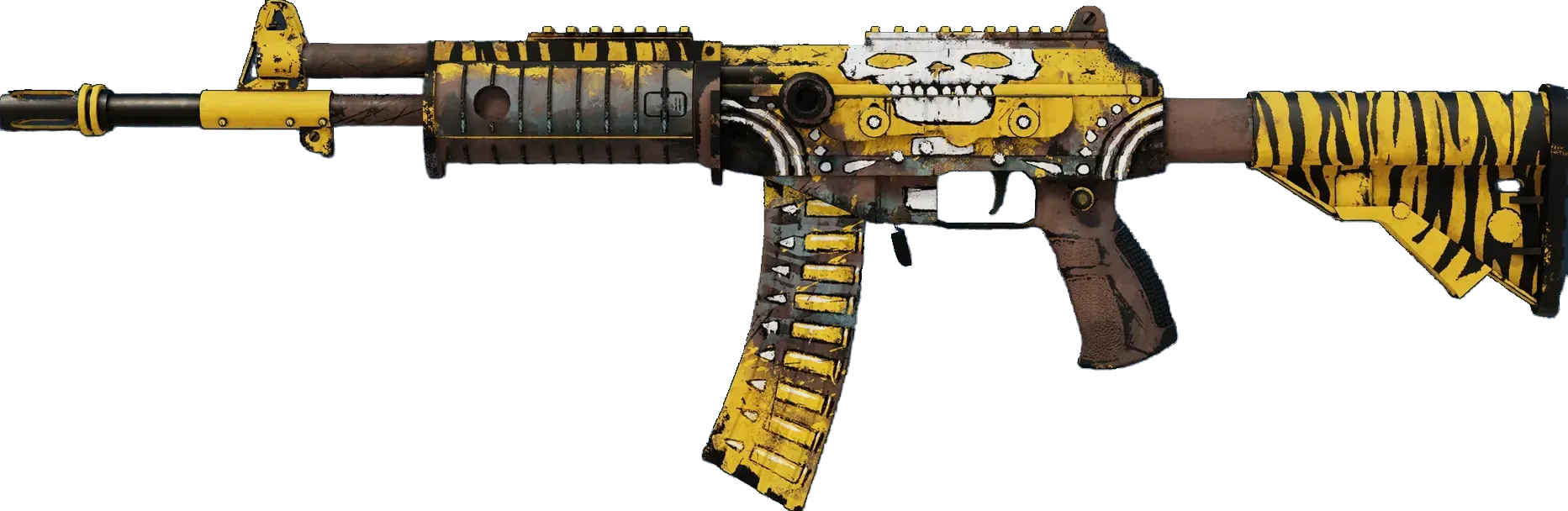 A less expensive option among the terrorist-exclusive assault rifles, the Galil AR is a serviceable weapon in medium to long-range combat. It has been hand-painted and distressed. The skull painted over the dust cover appears to chatter when the bolt reciprocates. _Some say that when you laugh, the world laughs with you...but when Chatterbox laughs there are only screams_