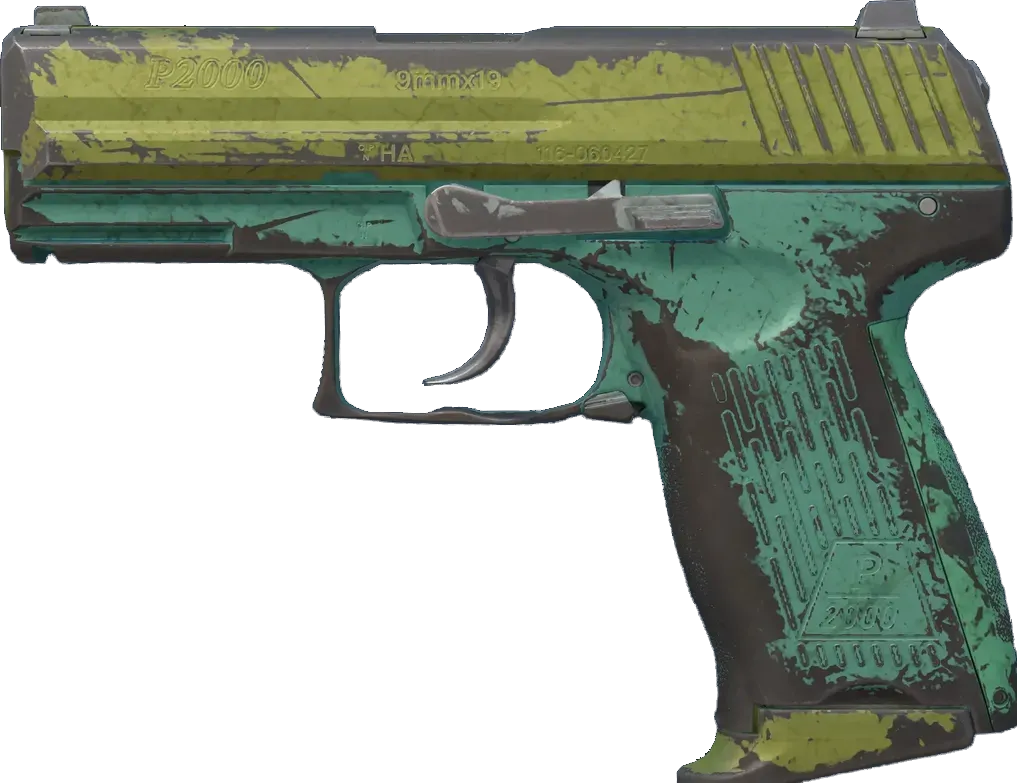 Accurate and controllable, the German-made P2000 is a serviceable first-round pistol that works best against unarmored opponents. It has been painted using different shades of green metallic flake paint. _A pleasant surprise_