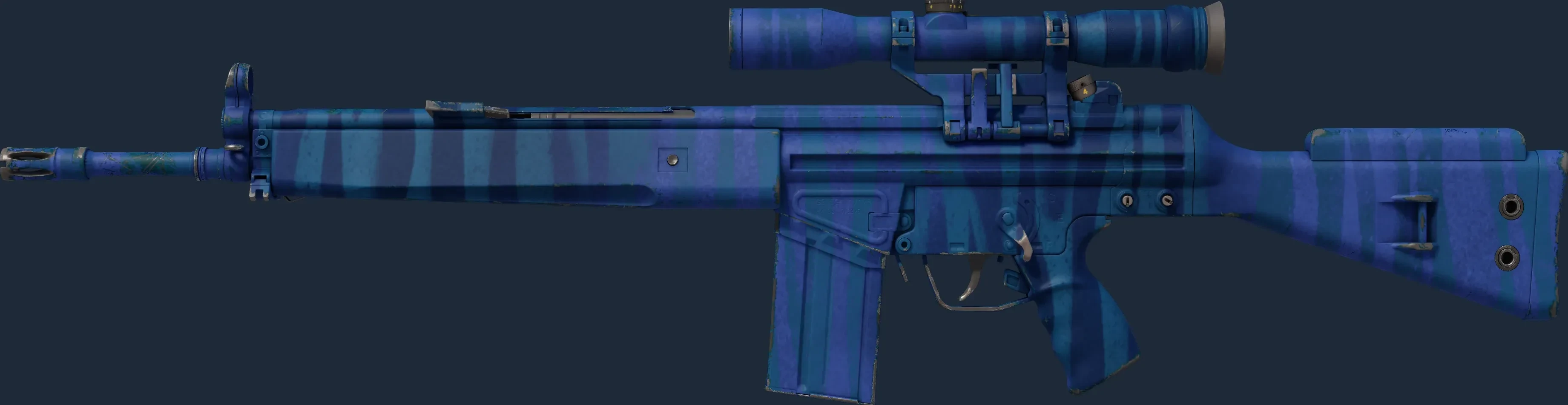 The G3SG1 | Azure Zebra is a Covert grade skin for the G3SG1 in Counter-Strike 2. It features a Custom Paint Job finish and was designed by Valve.