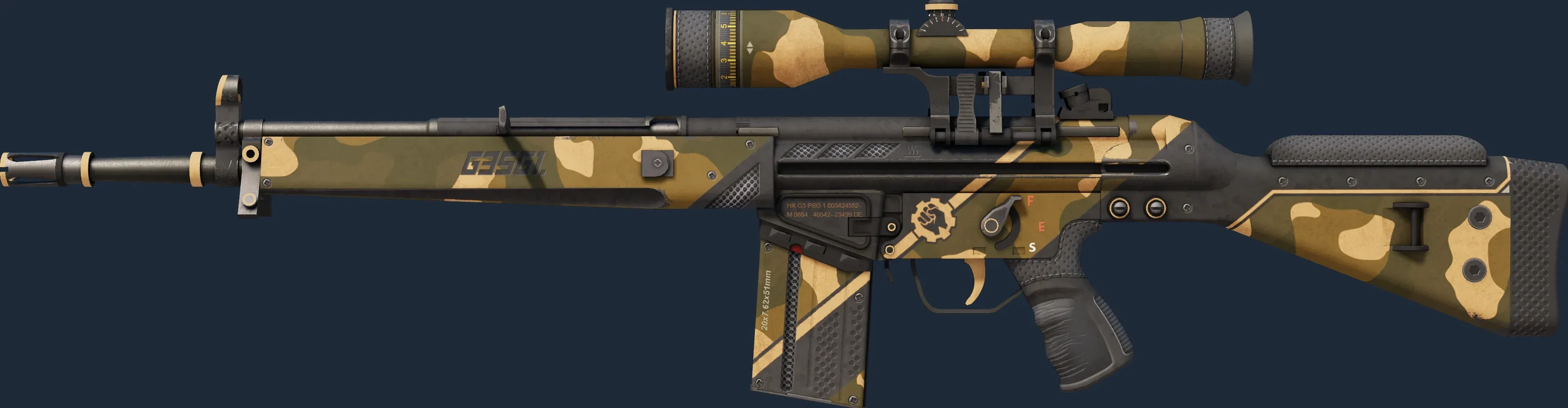 The G3SG1 | Black Sand is a Covert grade skin for the G3SG1 in Counter-Strike 2. It features a Custom Paint Job finish and was designed by MGBazz.