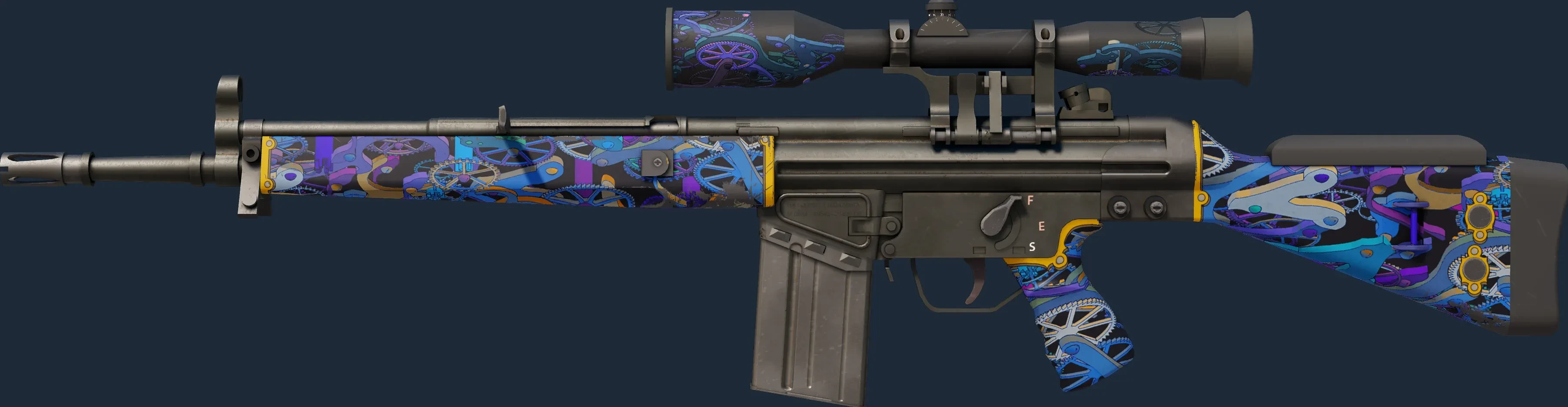 The G3SG1 | Chronos is a Covert grade skin for the G3SG1 in Counter-Strike 2. It features a Custom Paint Job finish and was designed by Valve.